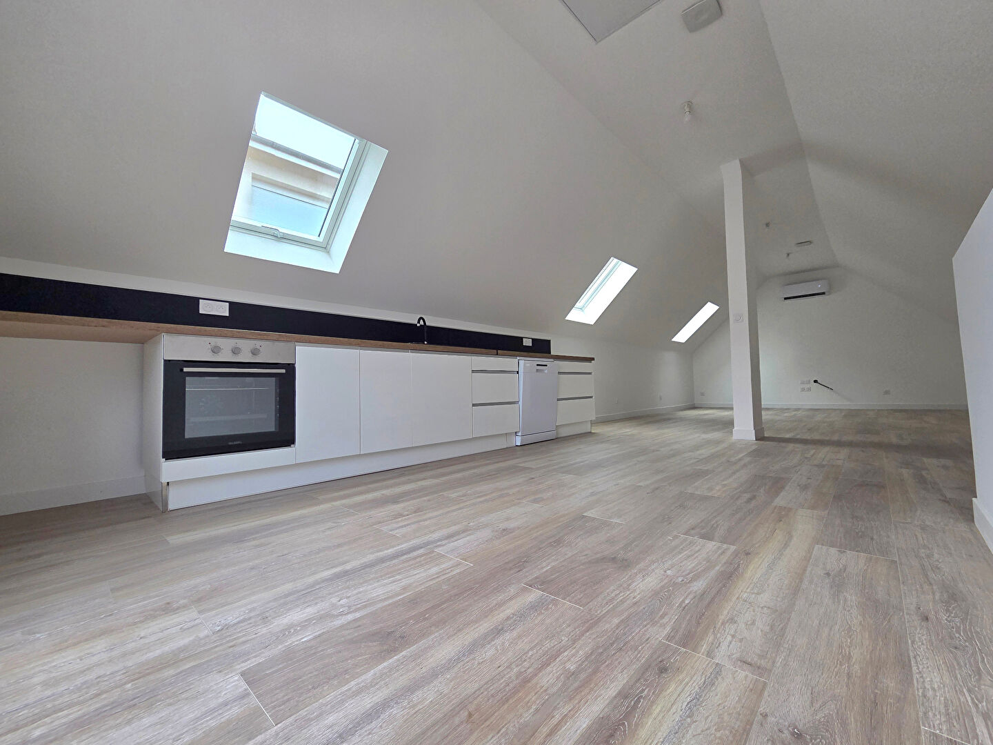 ...Au niveau principal, l'entrée mène à un espace traversant comprenant une cuisine équipée ouverte...