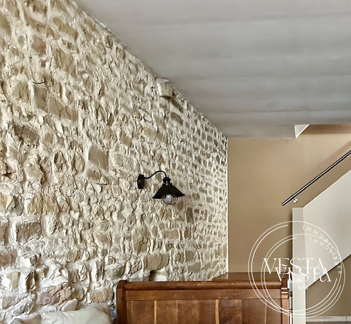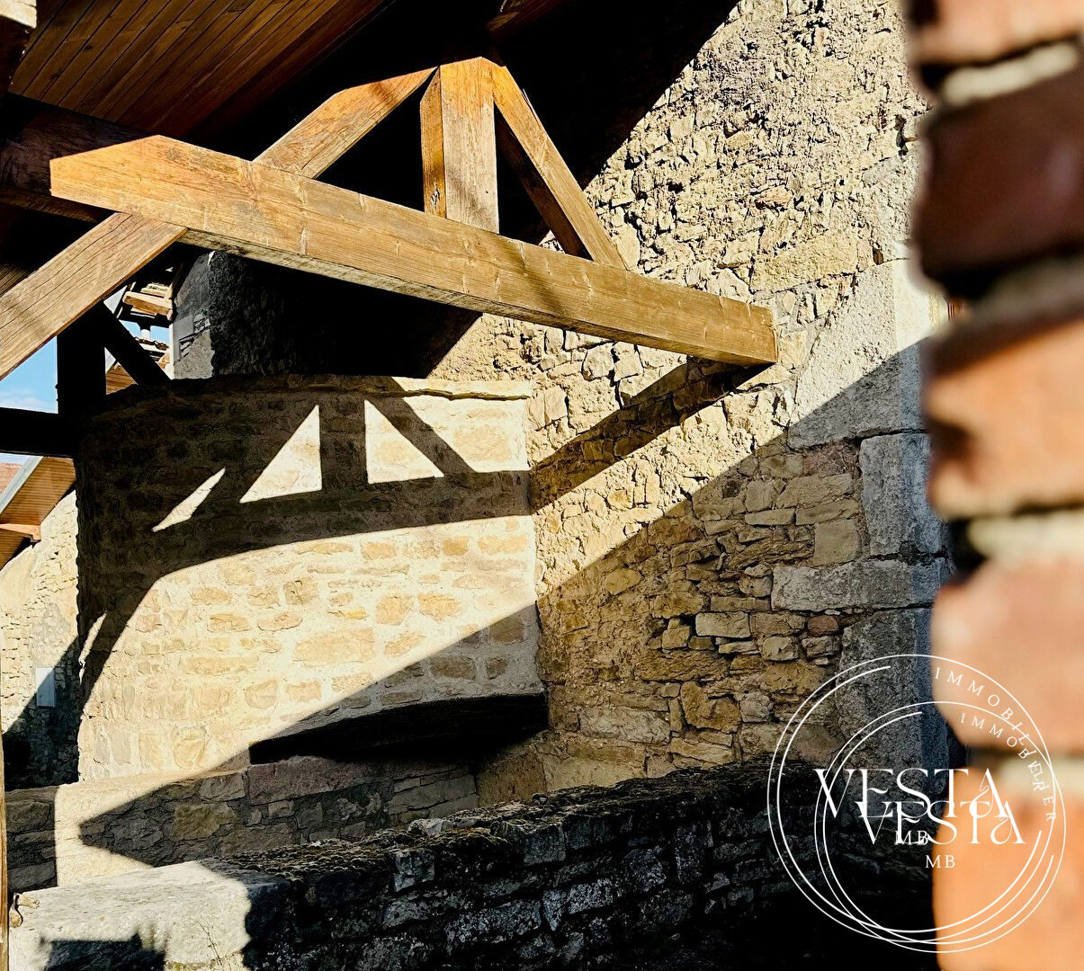 ...Dès l'entrée, vous serez séduit par le cachet de l'ancien : pierres apparentes, poutres en bois...