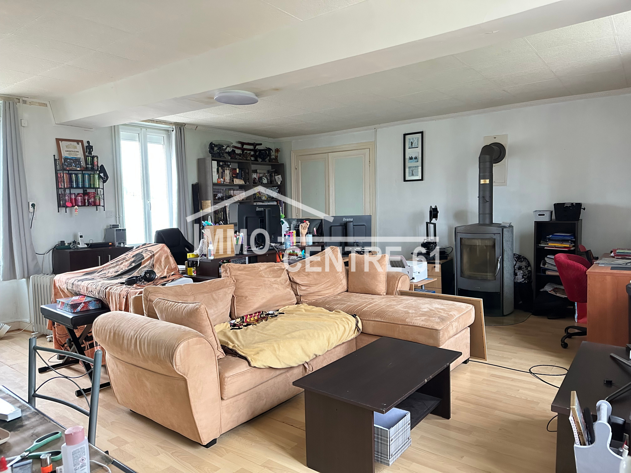 ...A l'étage: une chambre, grand salon avec poêle à bois et WC...