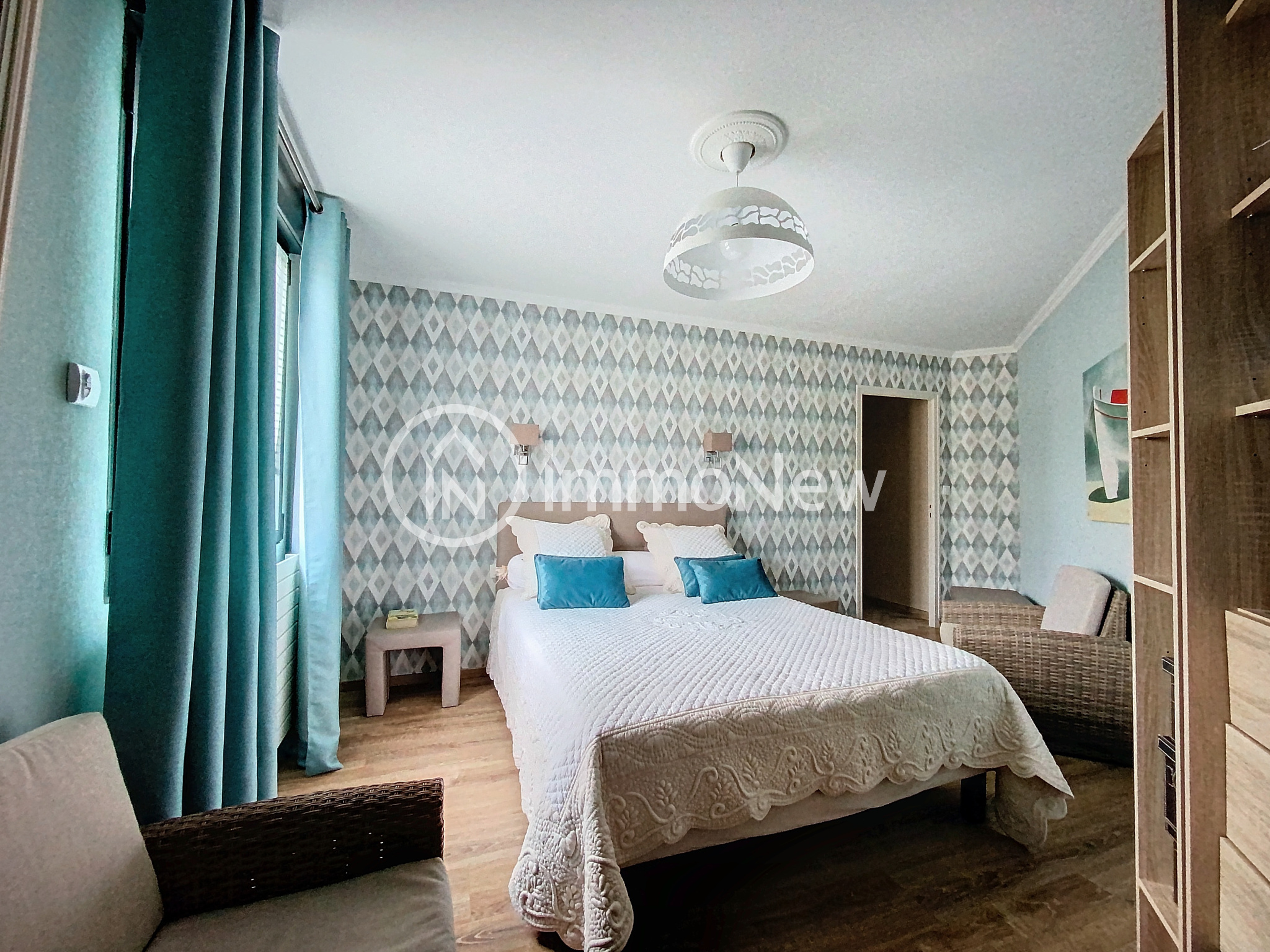 ...Vous arrivez à l'entrée par une cour donnant sur un salon puis un séjour en enfilade donnant...
