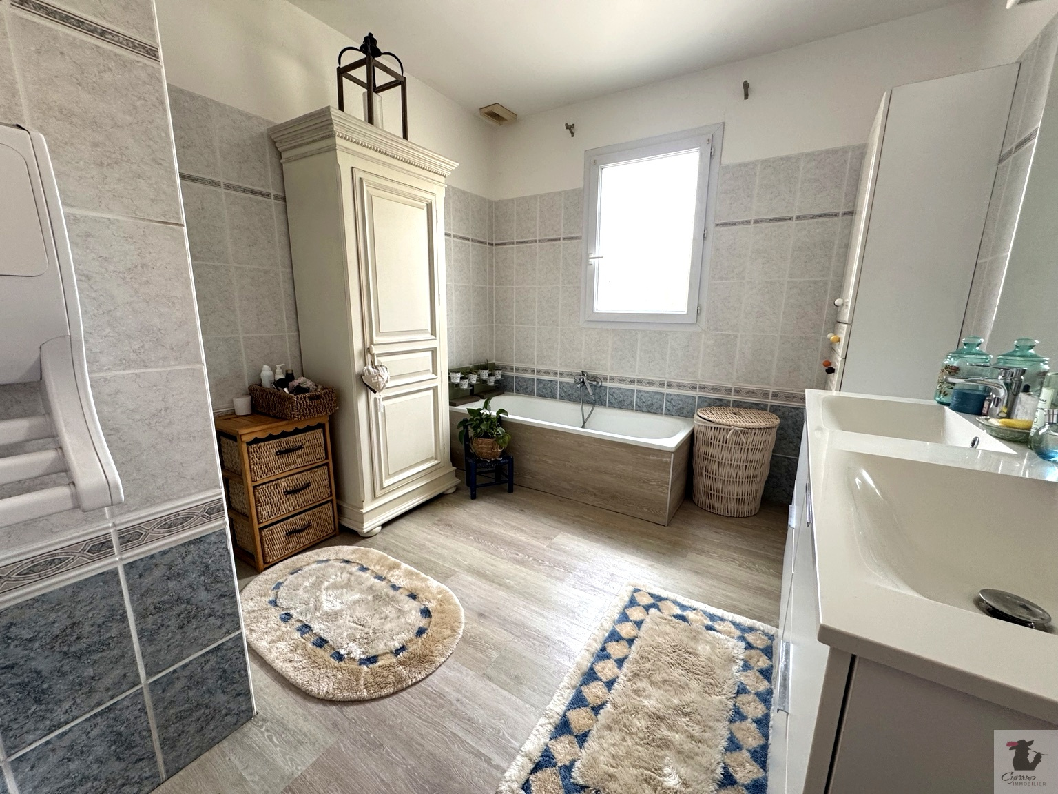 ... au milieu d'un parc verdoyant style Méditerranéen de 2881 m² clos, la maison se compose d'un halle ...