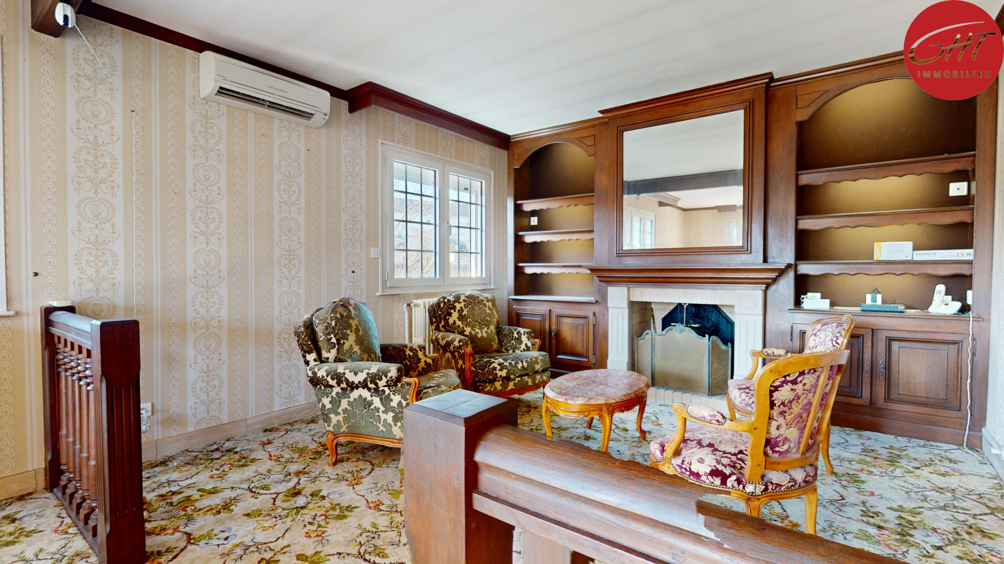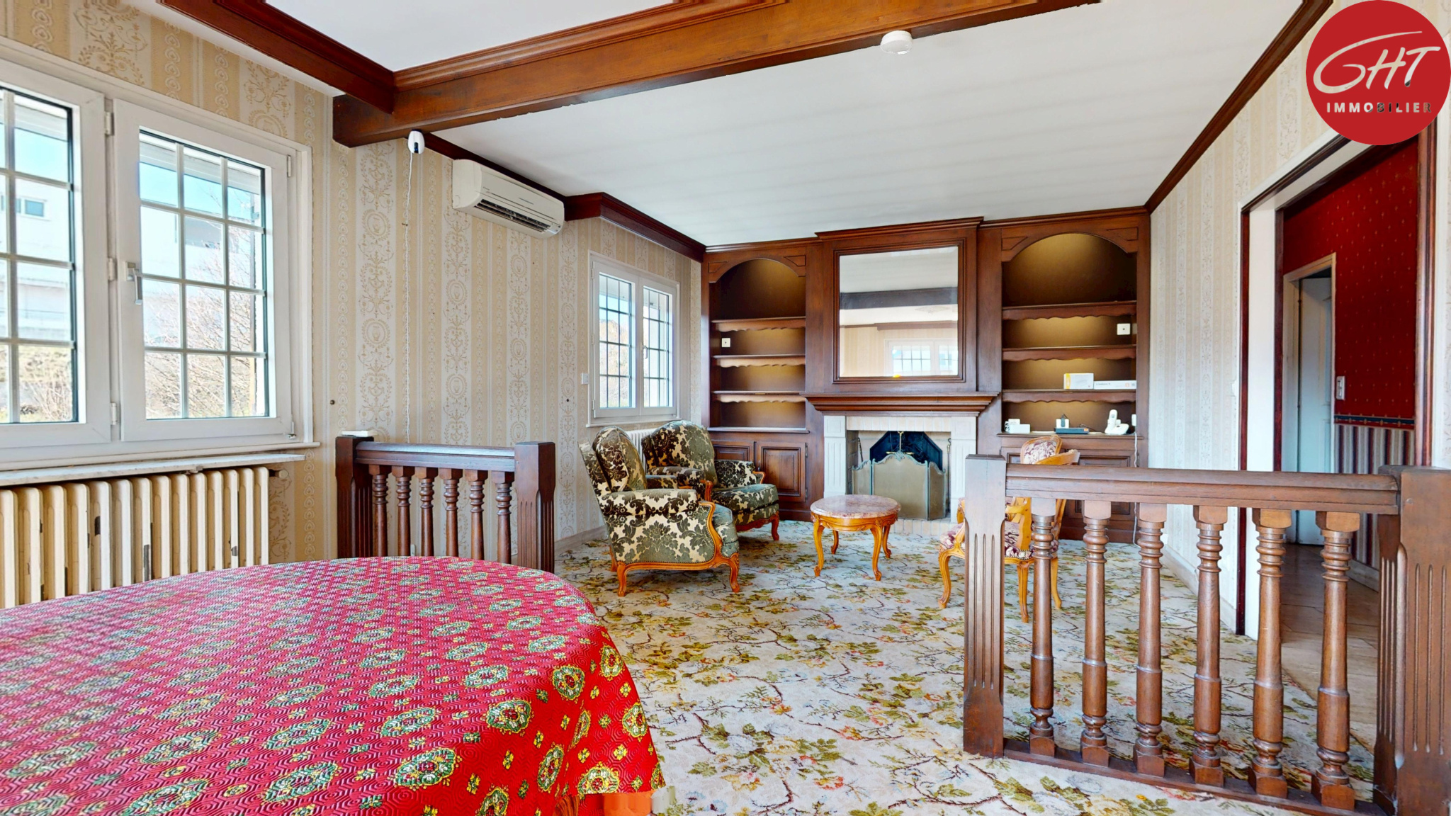 ...A l' étage , vous disposez d'un grand dégagement pouvant servir de bureau, de deux chambres...