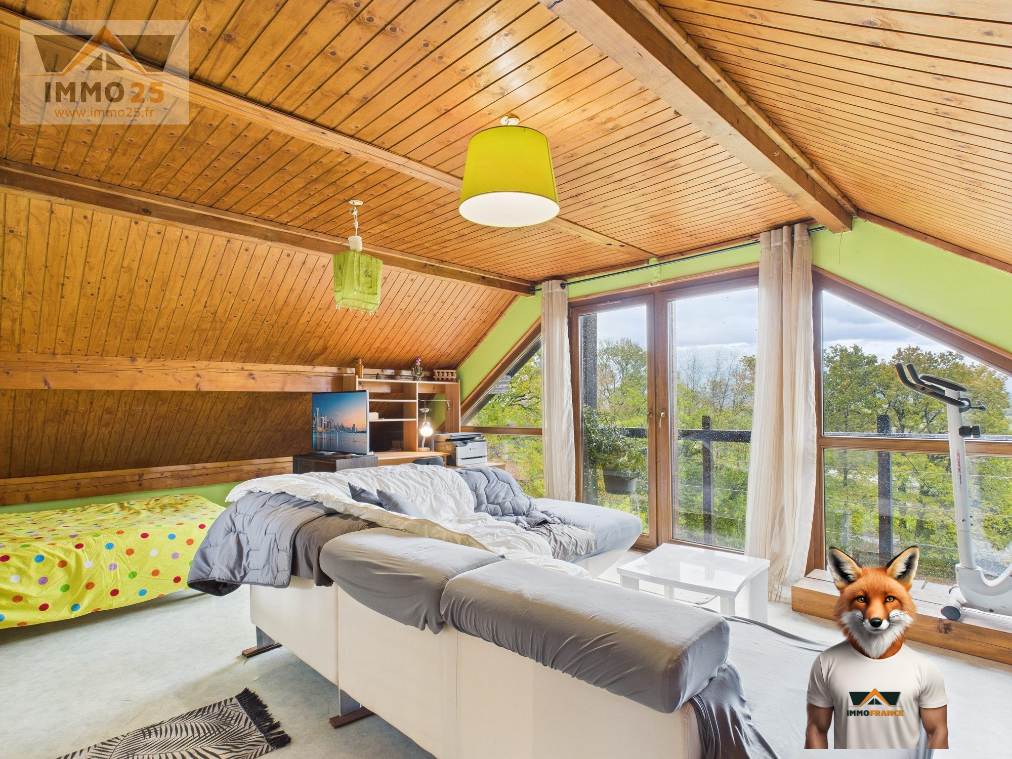...Au rez-de-chaussée, vous découvrirez une spacieuse pièce de vie lumineuse avec poêle à bois,...
