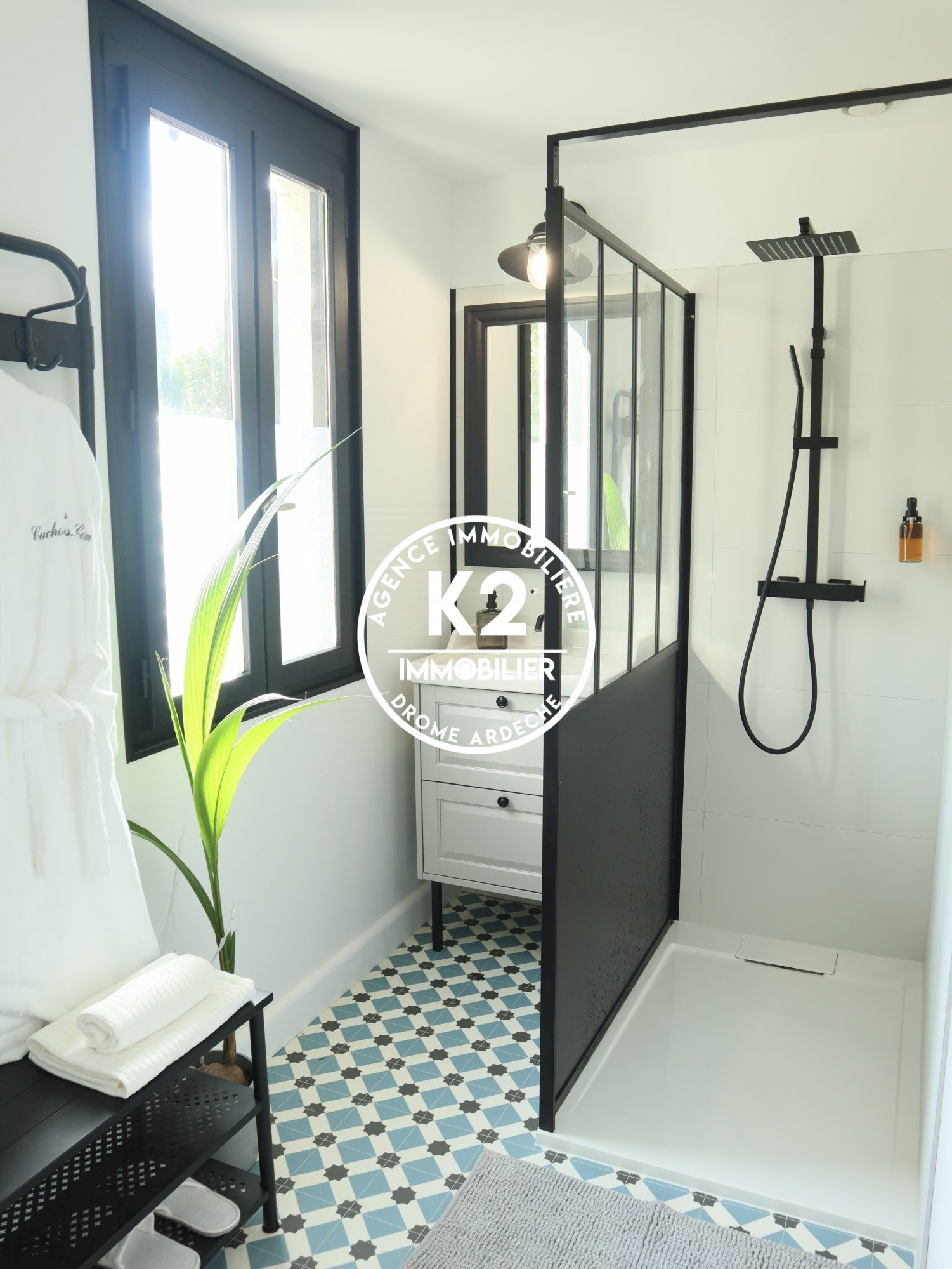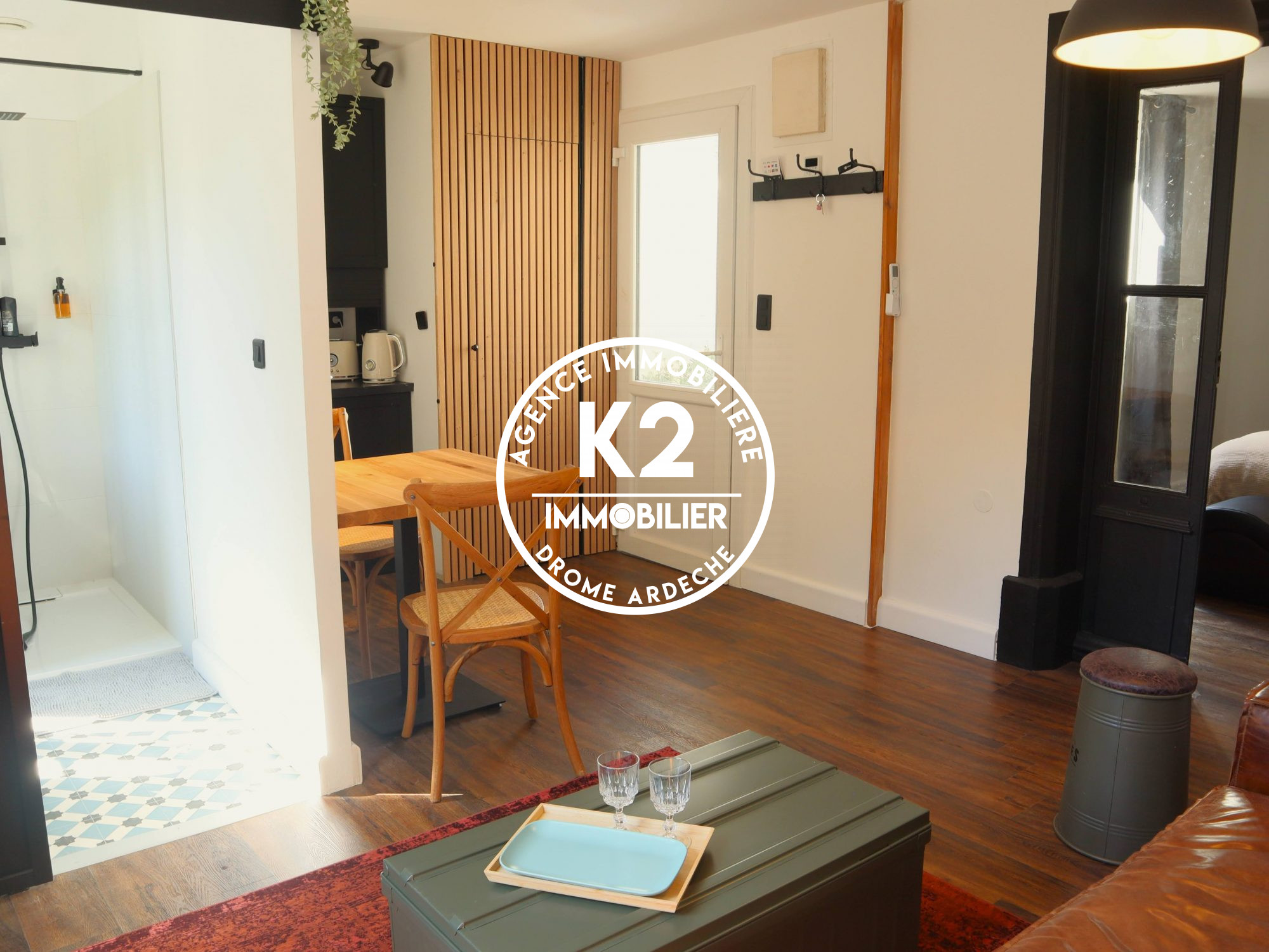 ... intégrant une cuisine équipée, un espace entrée avec vestiaire et une large baie à galandage ouvran...