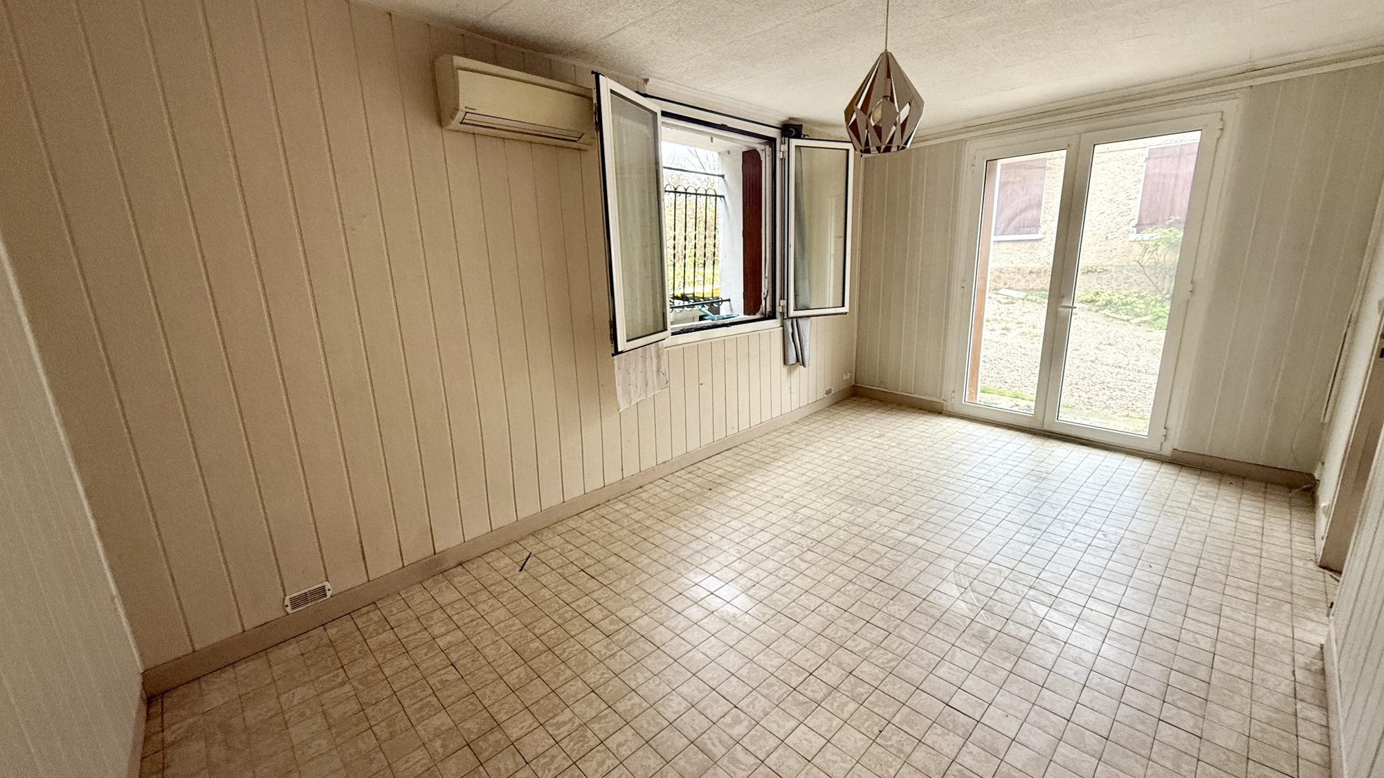 ...Construite dans les années 60, cette maison à rénovée vous propose une entrée, une pièce à vivre...