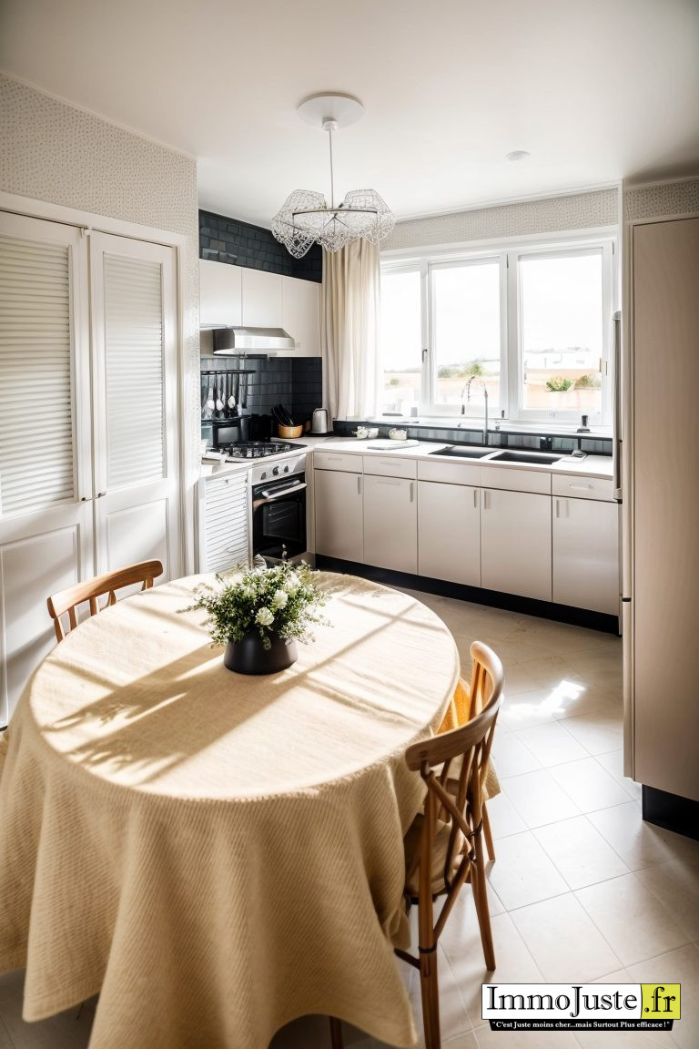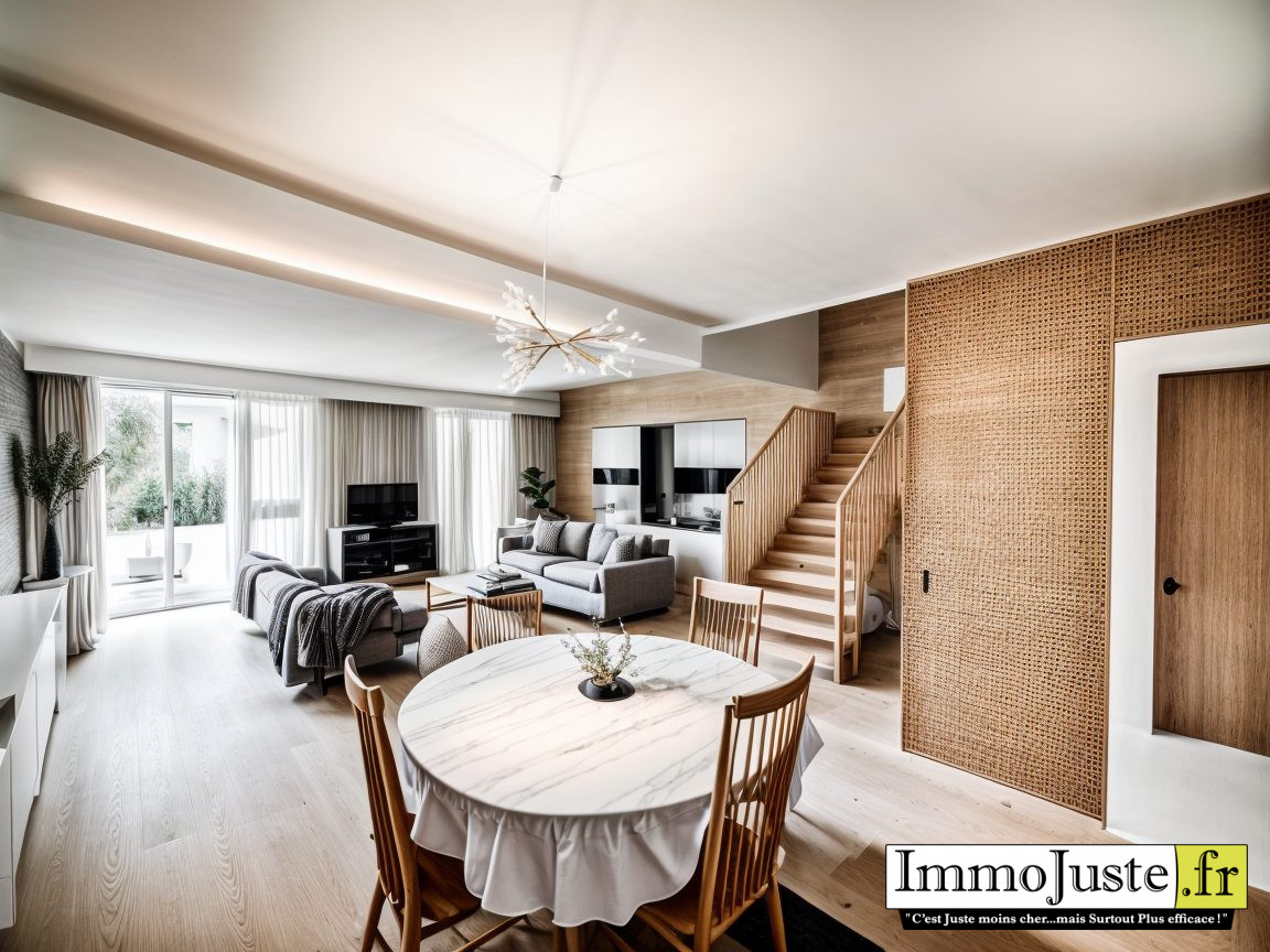 ... une entrée avec placards, une cuisine aménagée et équipée de 10m², un double séjour/salle à manger ...