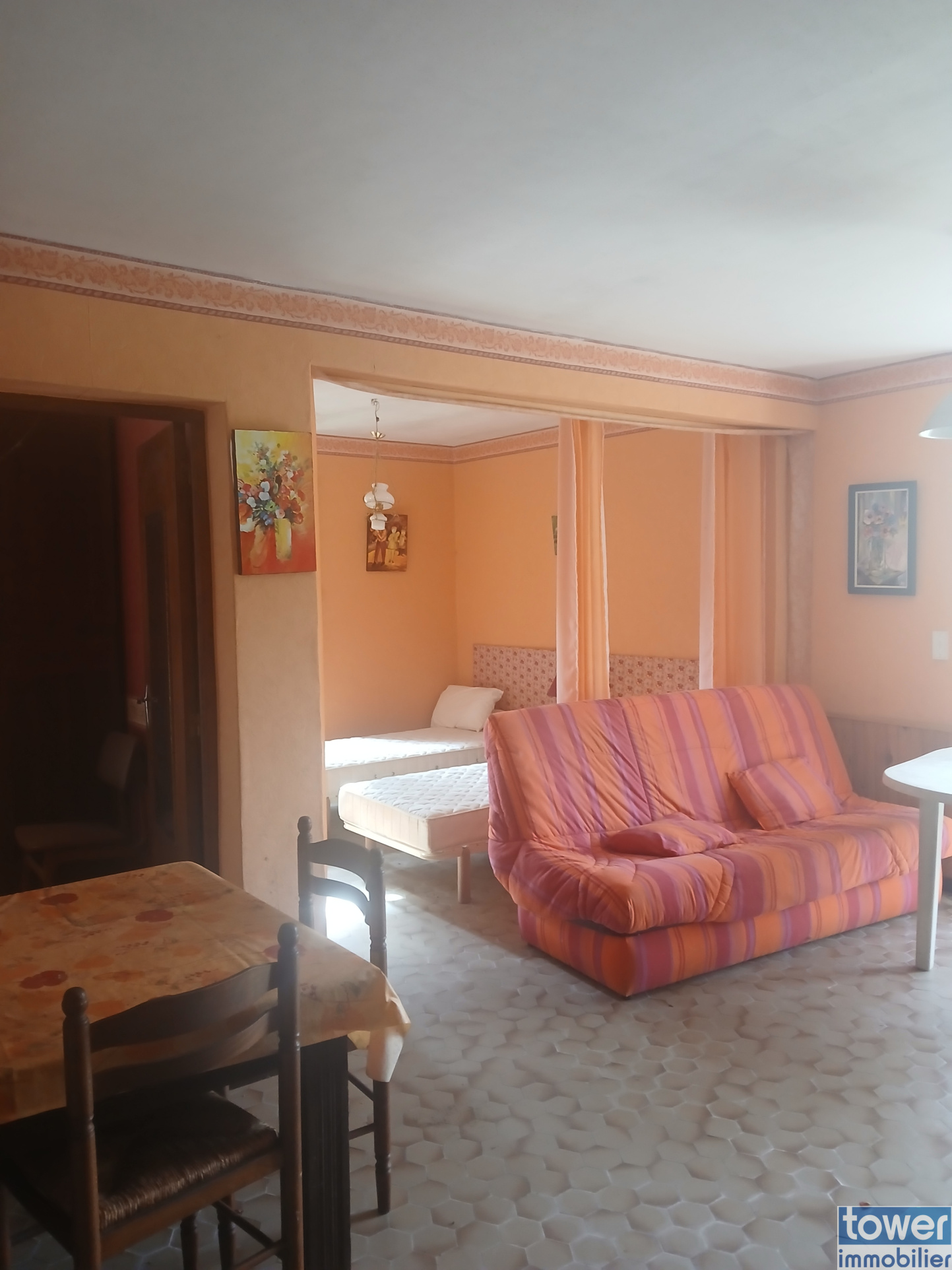 ...Actuellement divisée en deux lgements identiques, elle comprend pour chacun, deux chambres, un...
