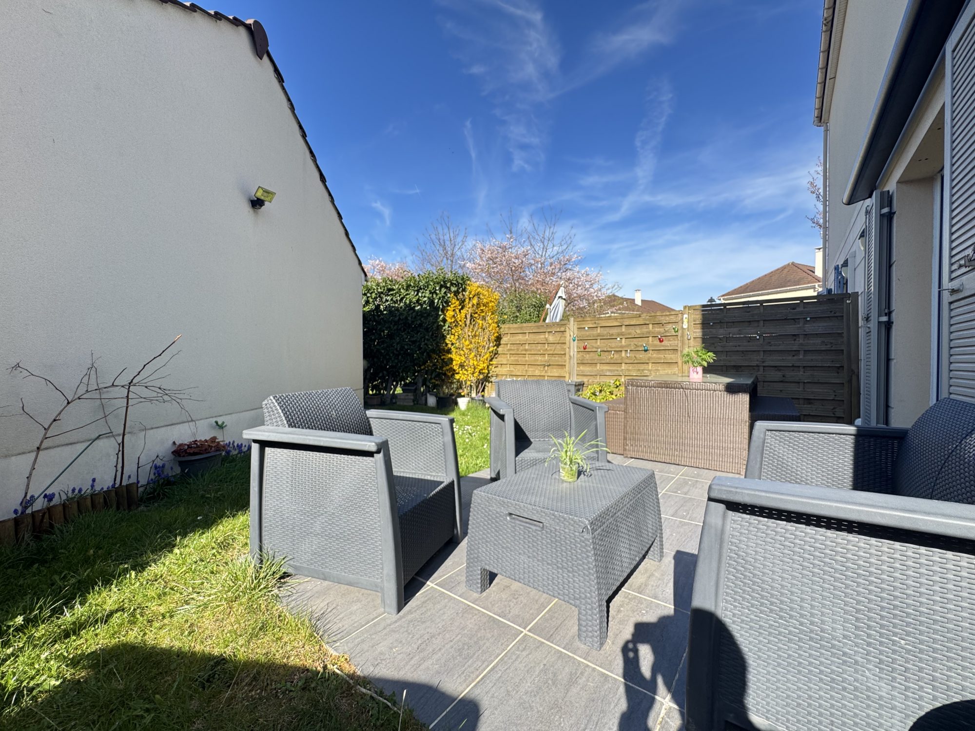 En rez-de-jardin : 2 chambres, une salle d'eau, des toilettes séparées...