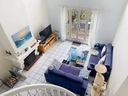 ...Au rez-de-chaussée : un vaste séjour partiellement cathédrale avec cheminée, ouvert sur le...
