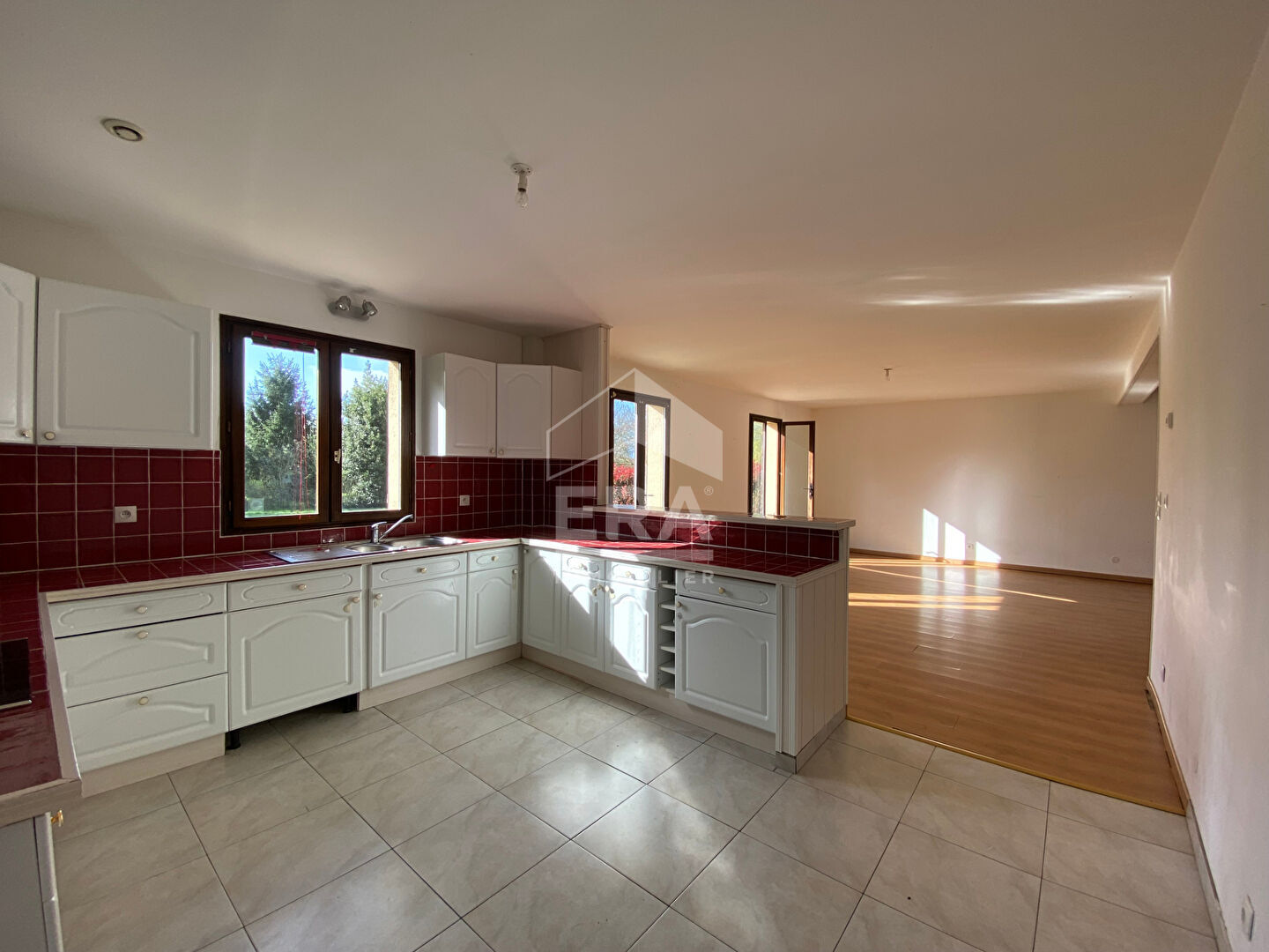 ... salon / séjour lumineux ouvert sur une cuisine aménagée