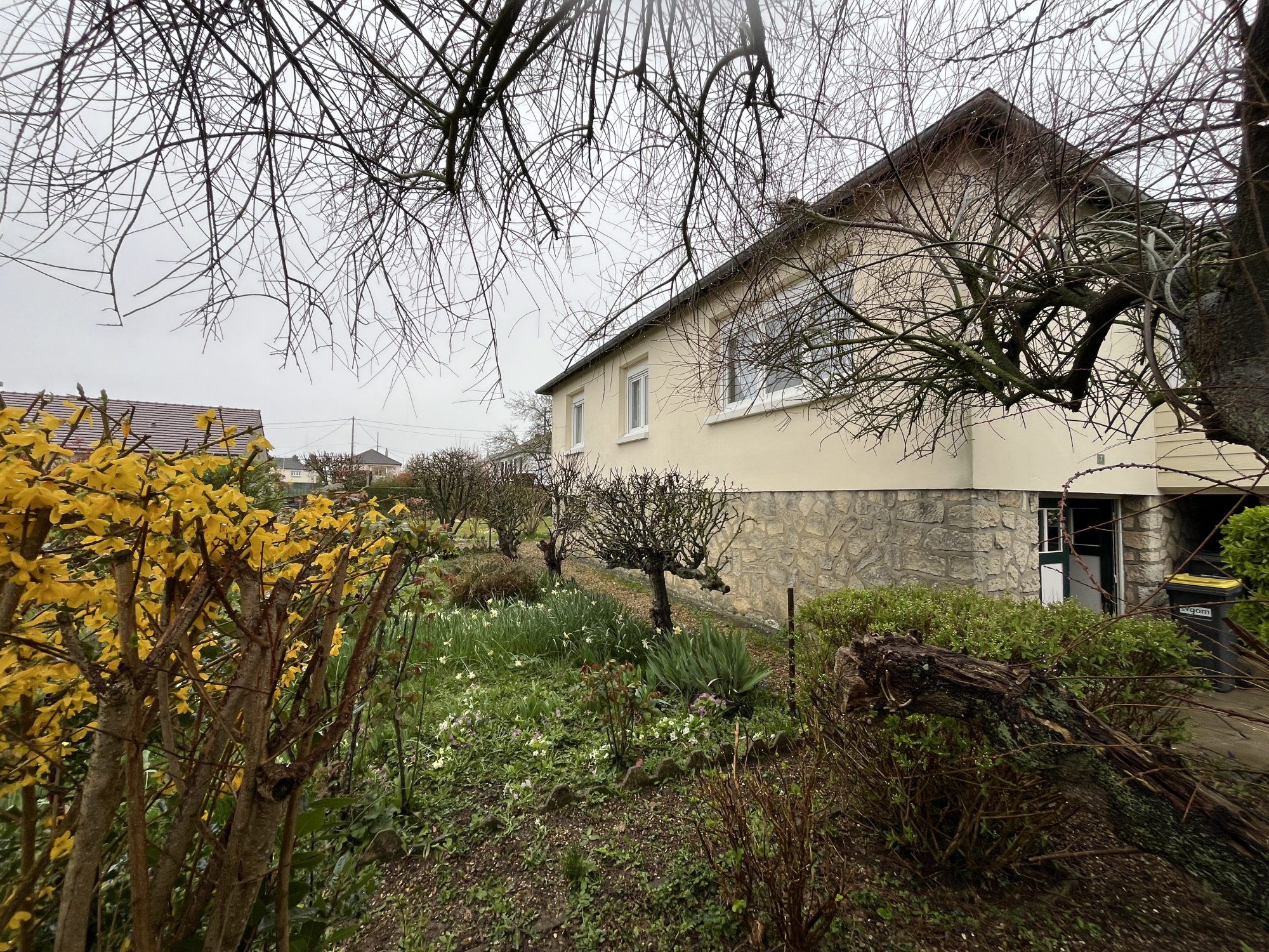 ...Sous-sol avec une pièce aménagée de 11 m², chaufferie/ buanderie, garage...