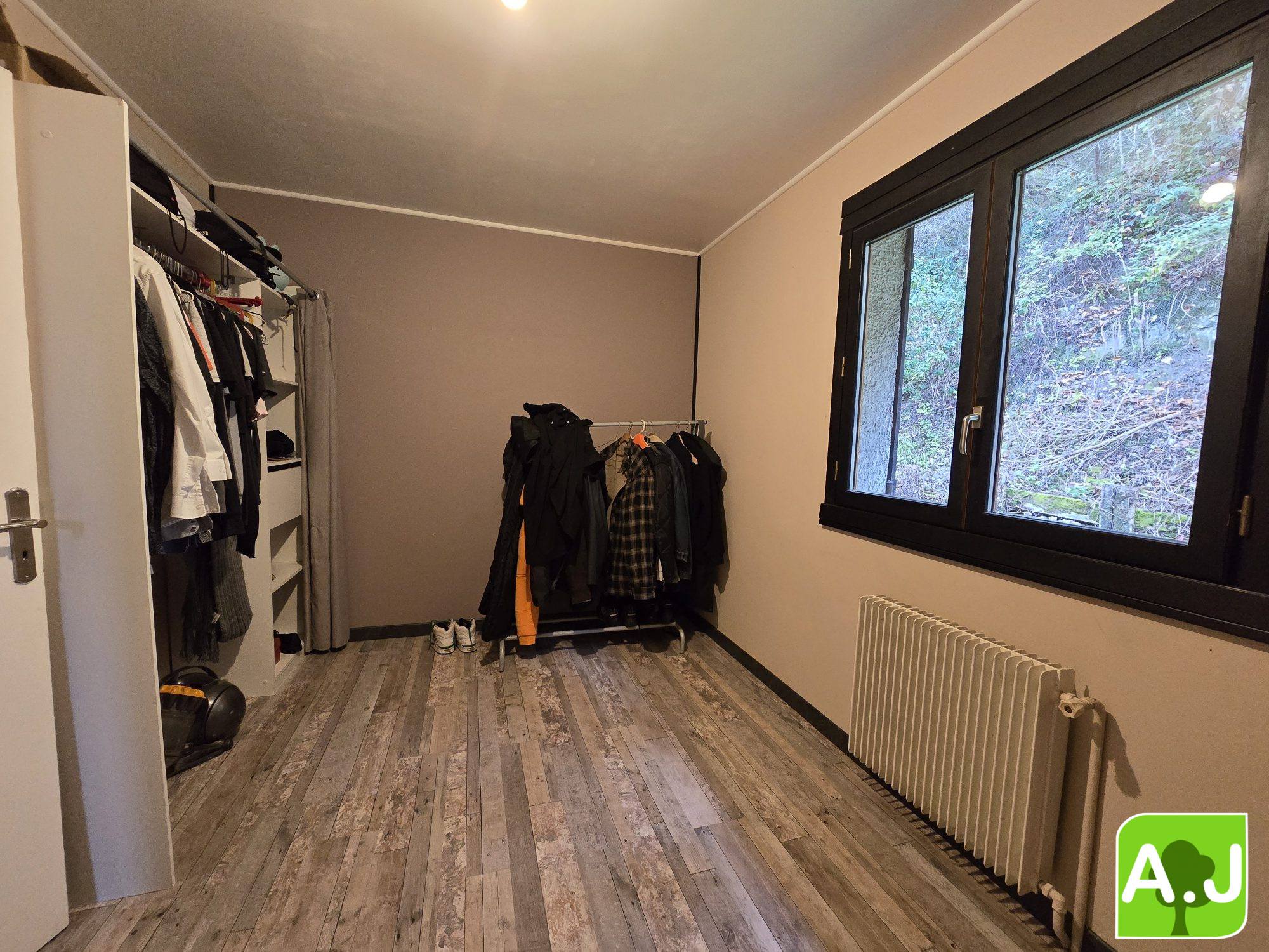 ...Cette propriété comprend en son rez-de-chaussée : une entrée, un salon-séjour avec poêle à bois...