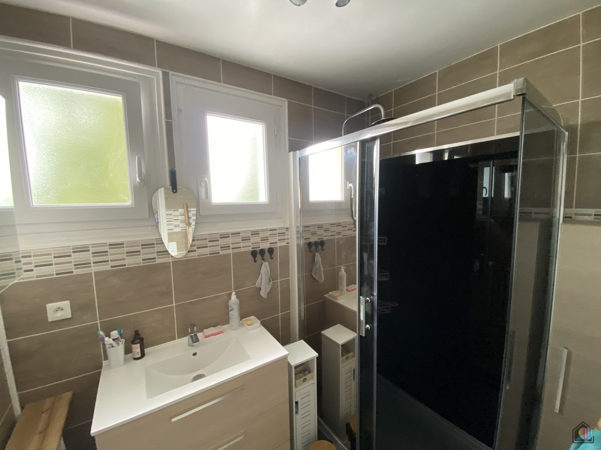 ...Au premier étage: palier, 2 chambres, salle de douche, wc...