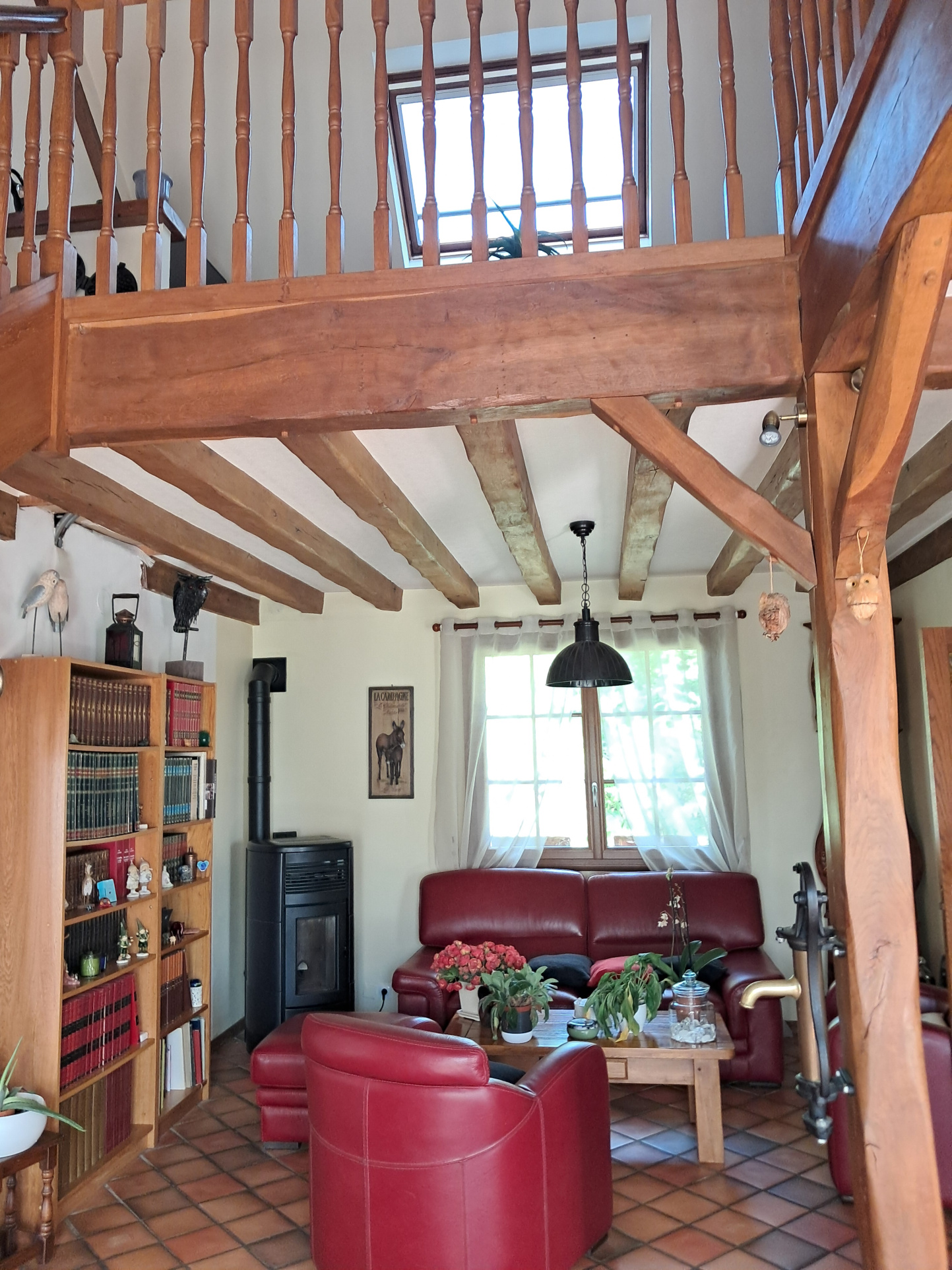 ...Maison comprenant au rdc :entrée, double séjour avec poele, cuisine récente aménagée et équipée...