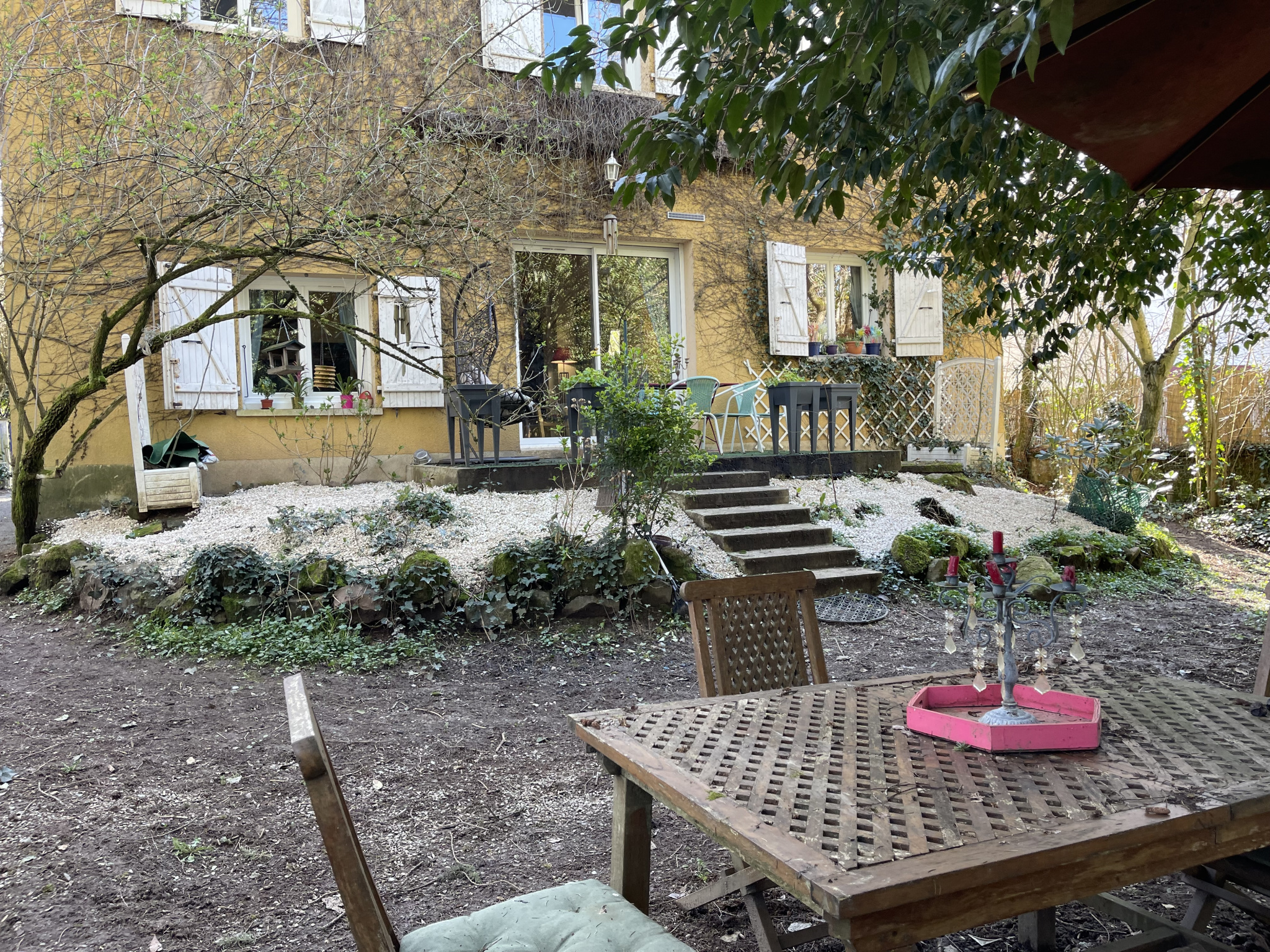 ...Agréable jardin plat et arboré d'environ 690 m2...