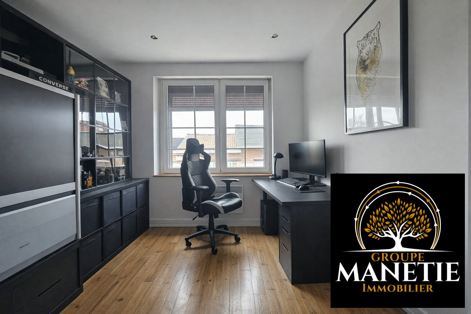 ...Au premier étage : 2 chambres, un bureau (ou petite chambre), ainsi qu'une salle de douche...
