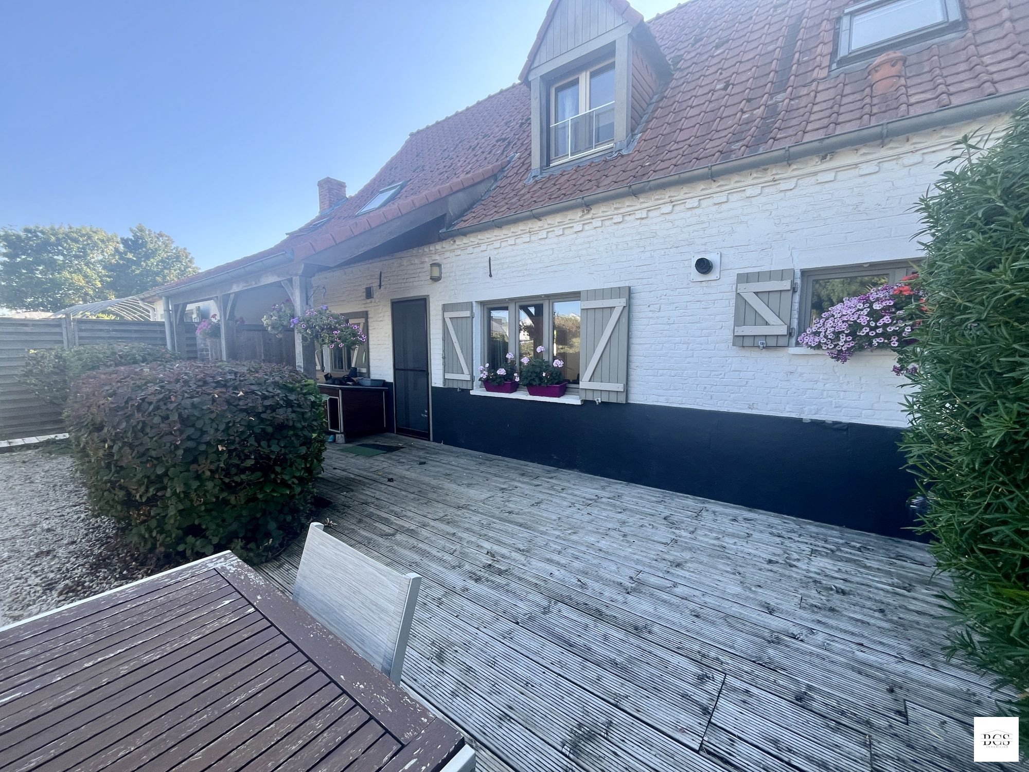 ...Garage, parking privatif en façade, terrasse, jardin clos avec passage sur le côté...