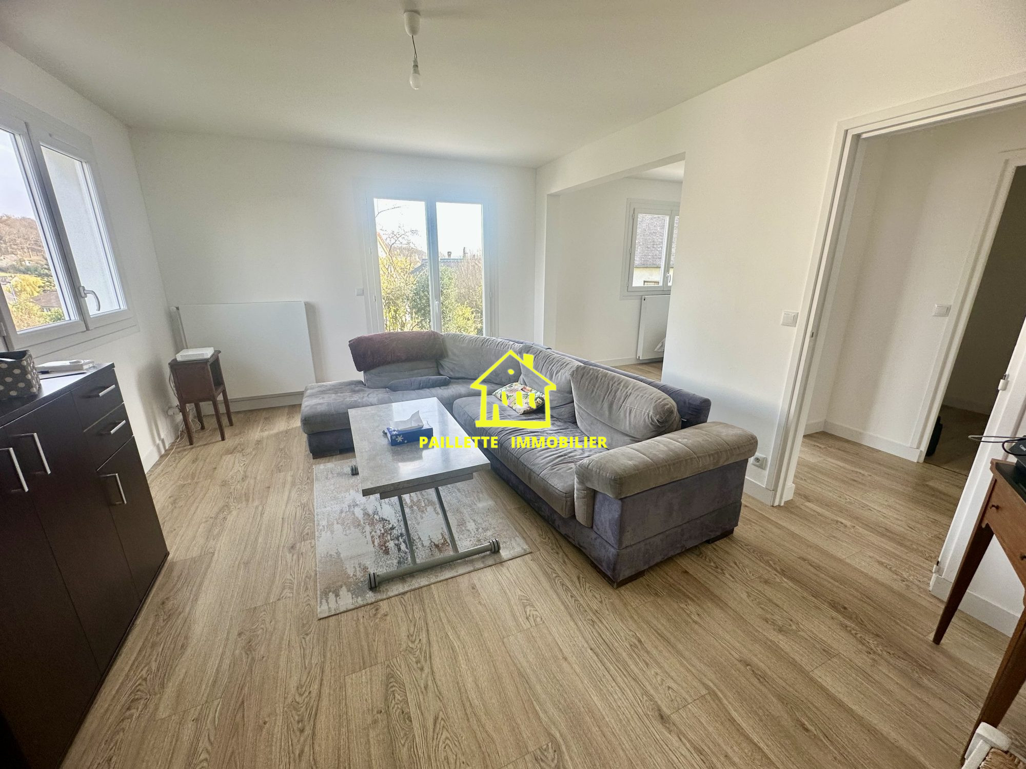 ... Vie de plain-pied au rez-de-chaussée avec : Un grand séjour-salon lumineux donnant sur une...