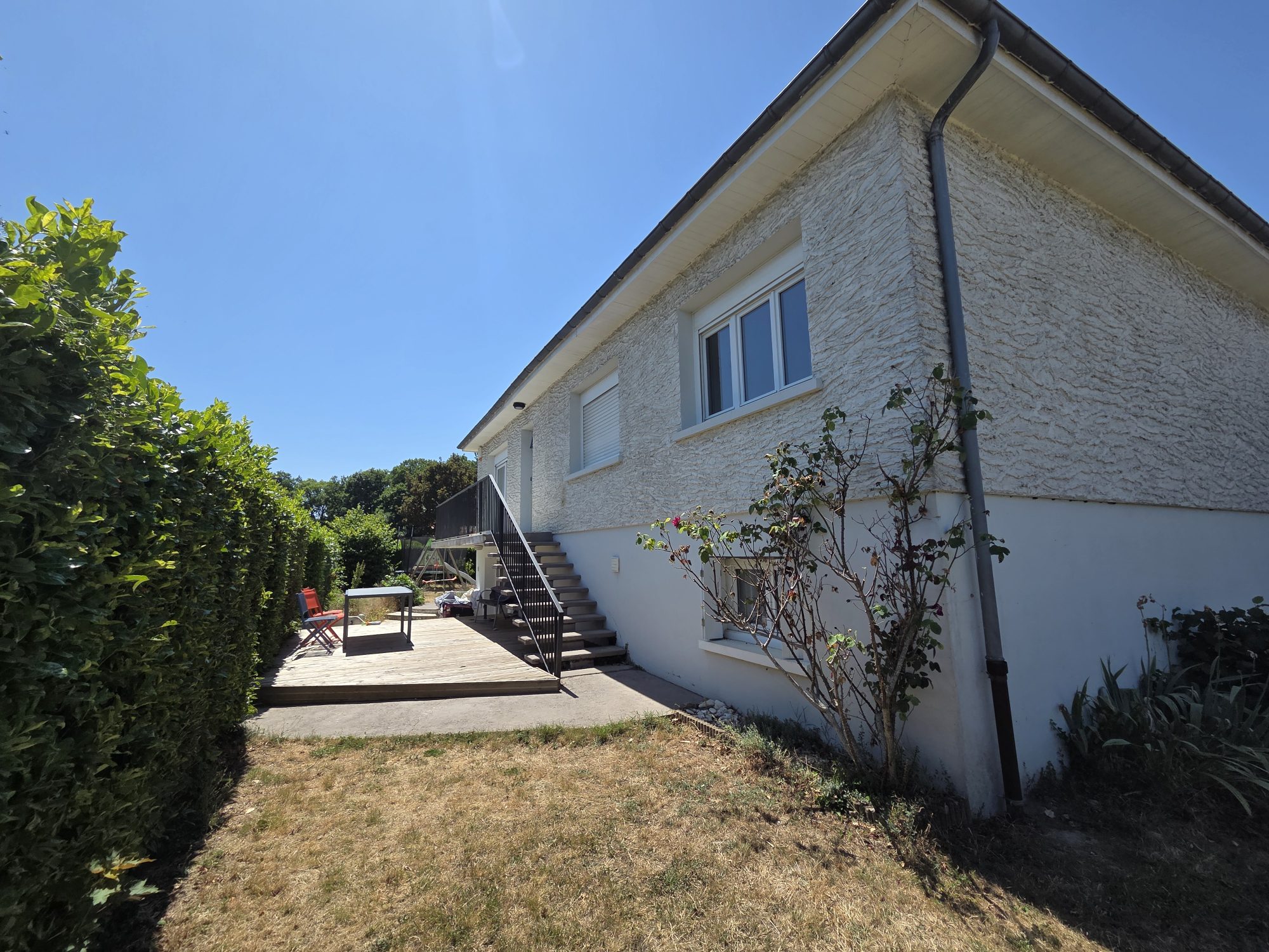 ...Sur 2 niveaux, cette maison propose:A l'étage: une entrée avec dégagement, une cuisine meublée et...
