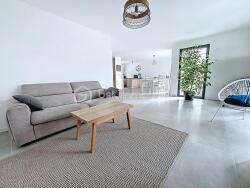 ...Le rez-de-chaussée s'ouvre sur une spacieuse pièce de vie d'environ 50 m² avec salon et cuisine...
