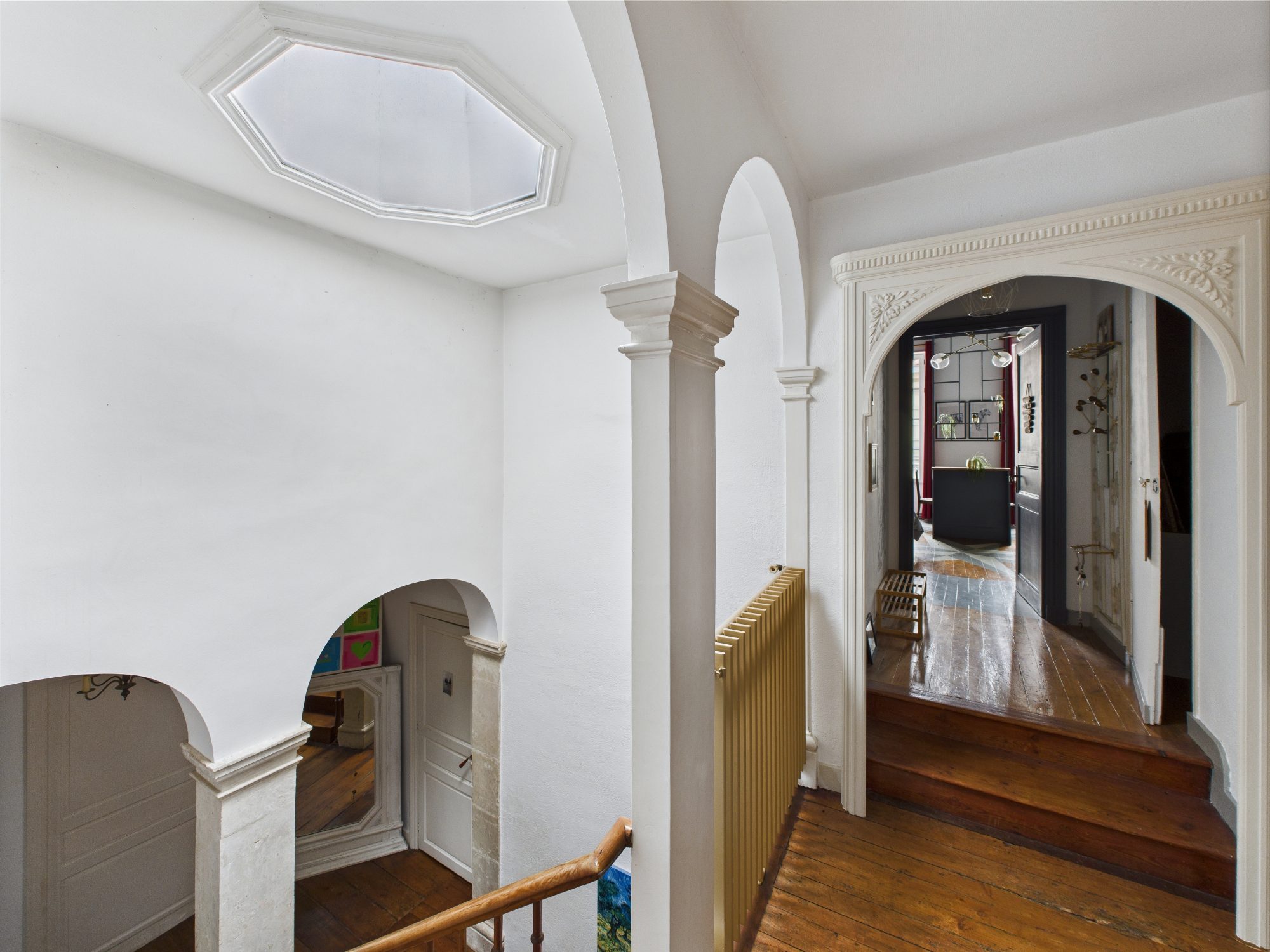 ... baigné de lumière naturelle grâce à ses ouvertures en bois. Les murs épais et les plafonds hauts aj...