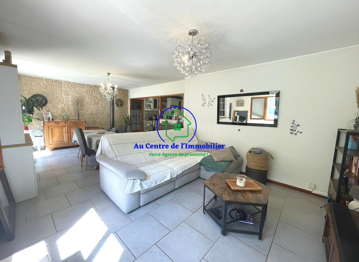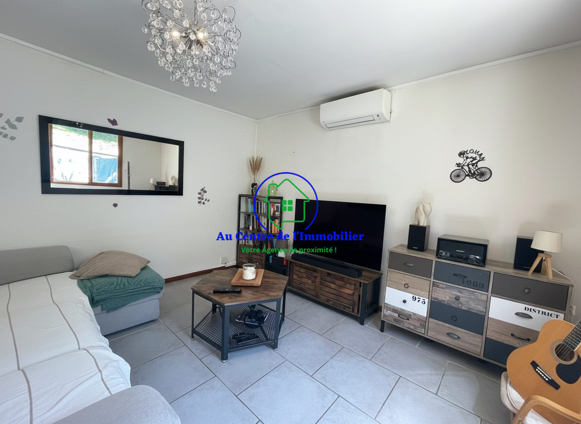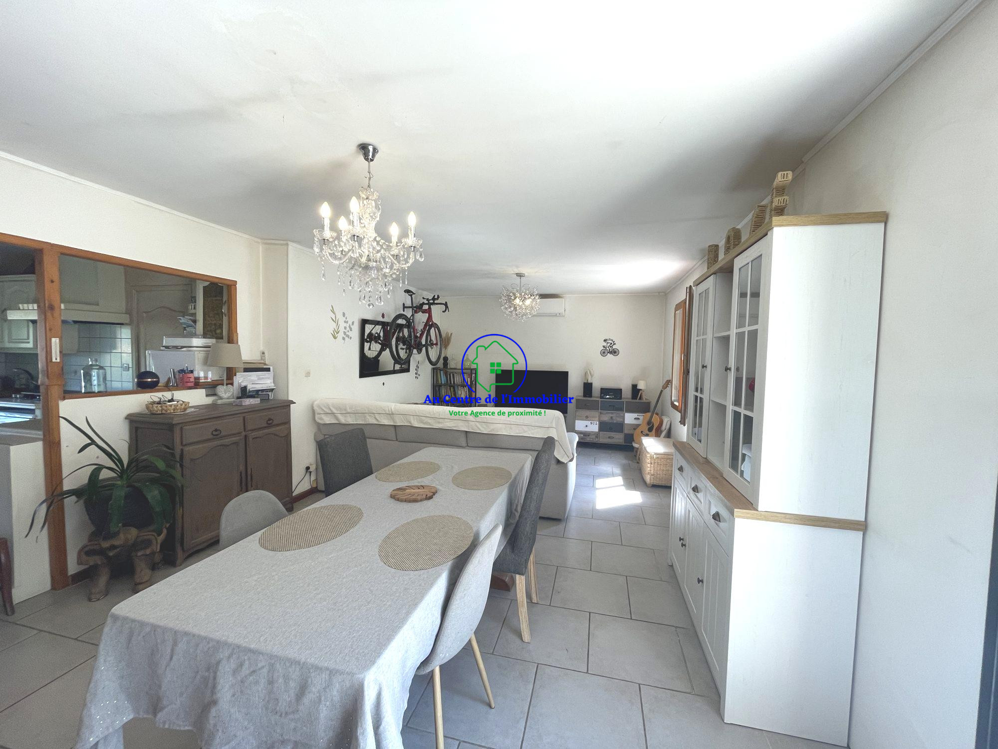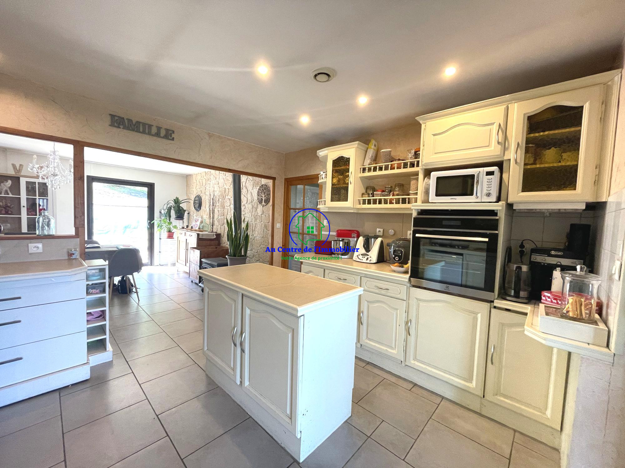 ...Elle se compose d'une belle véranda lumineuse ouvrant sur une cuisine aménagée, elle-même ouverte...
