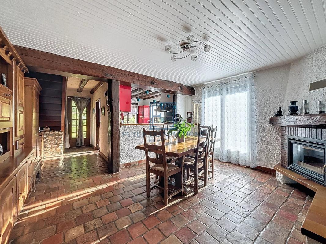 ...Au rez-de-chaussée, grand séjour double avec poêle à bois, cuisine aménagée, arrière cuisine, WC,...