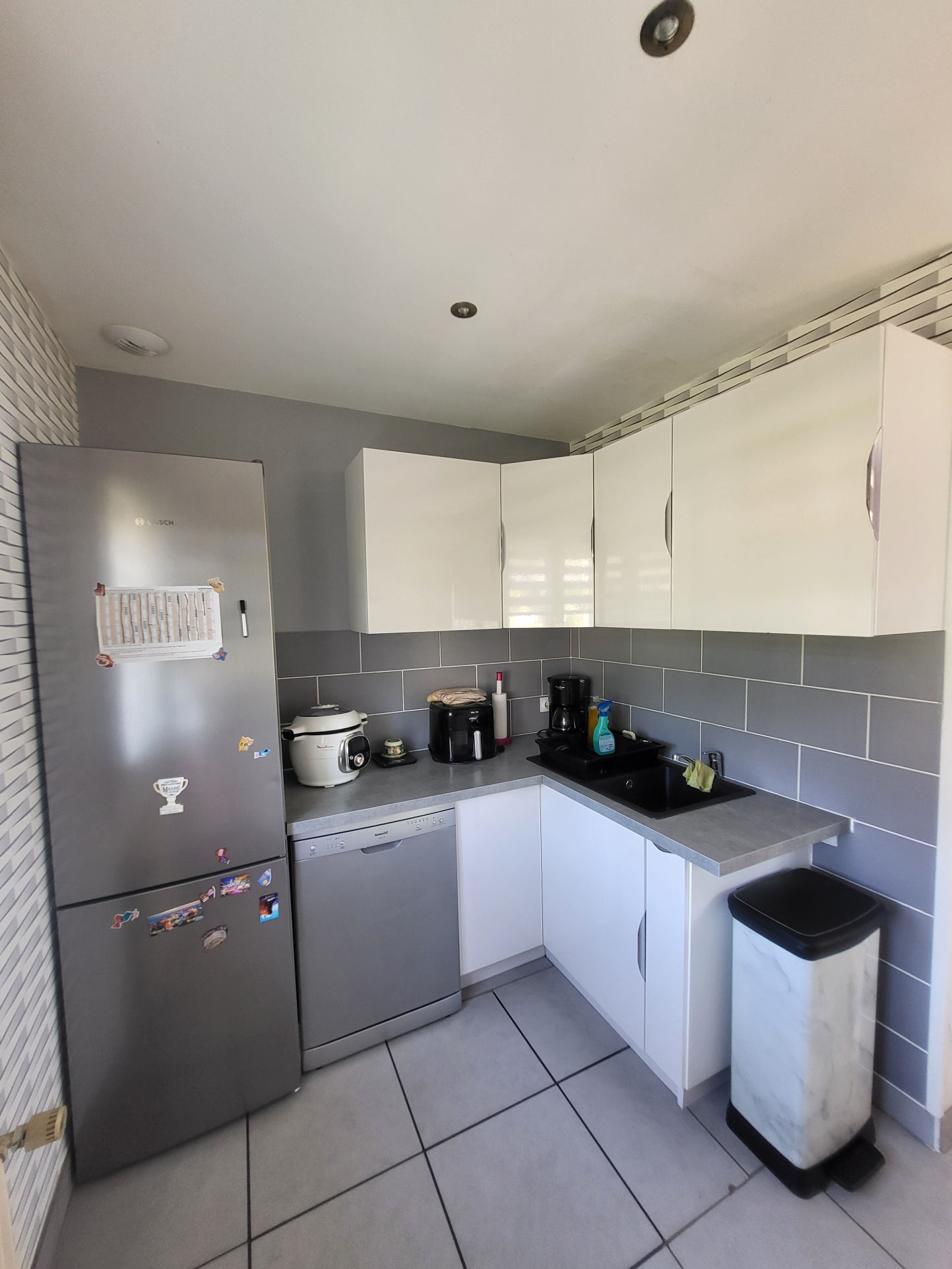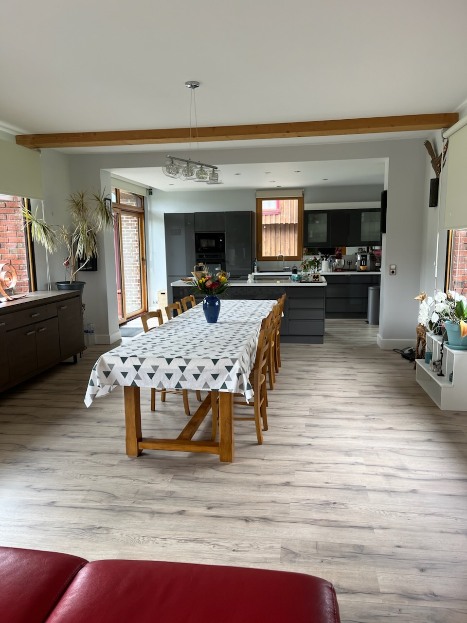 ...Au rez-de-chaussée : entrée avec placards, cuisine aménagée et équipée ouverte sur grand séjour...
