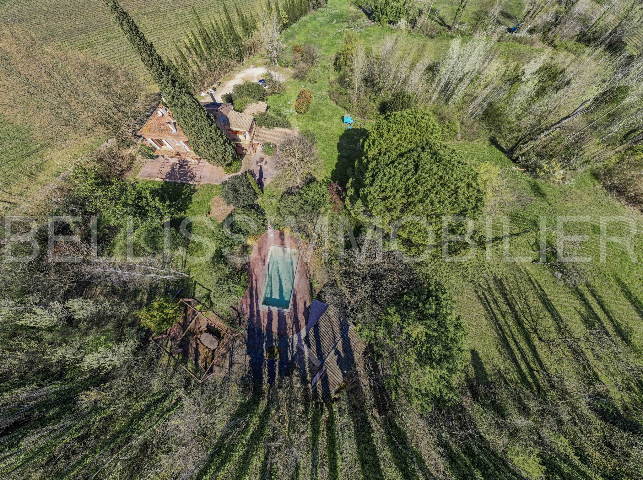 ...Disposant d'un jardin de 9800m2 en faïsses avec piscine, source, garage et atelier, ce bien se...