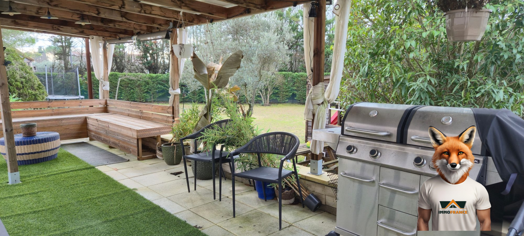 ... un séjour lumineux de 41 m2 avec un accès au jardin, une cuisine entièrement équipée, une buanderie...
