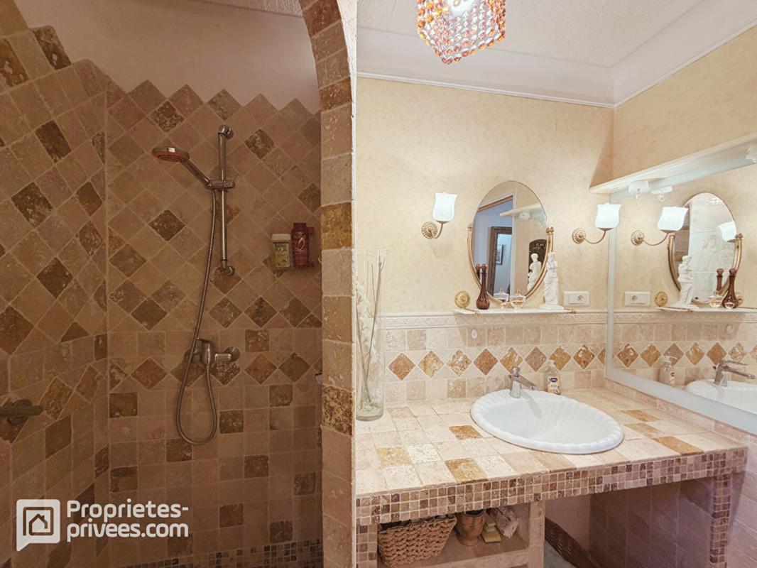 ... des finitions modernes, pierres et poutres apparentes, travertin au sol. En entrant, vous découvrez...
