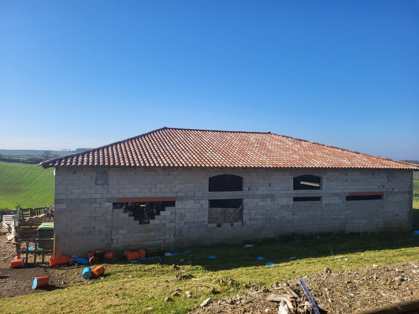 ...Le bâtiment, construit en parpaings avec une toiture en tuiles romanes, bénéficie d'une...