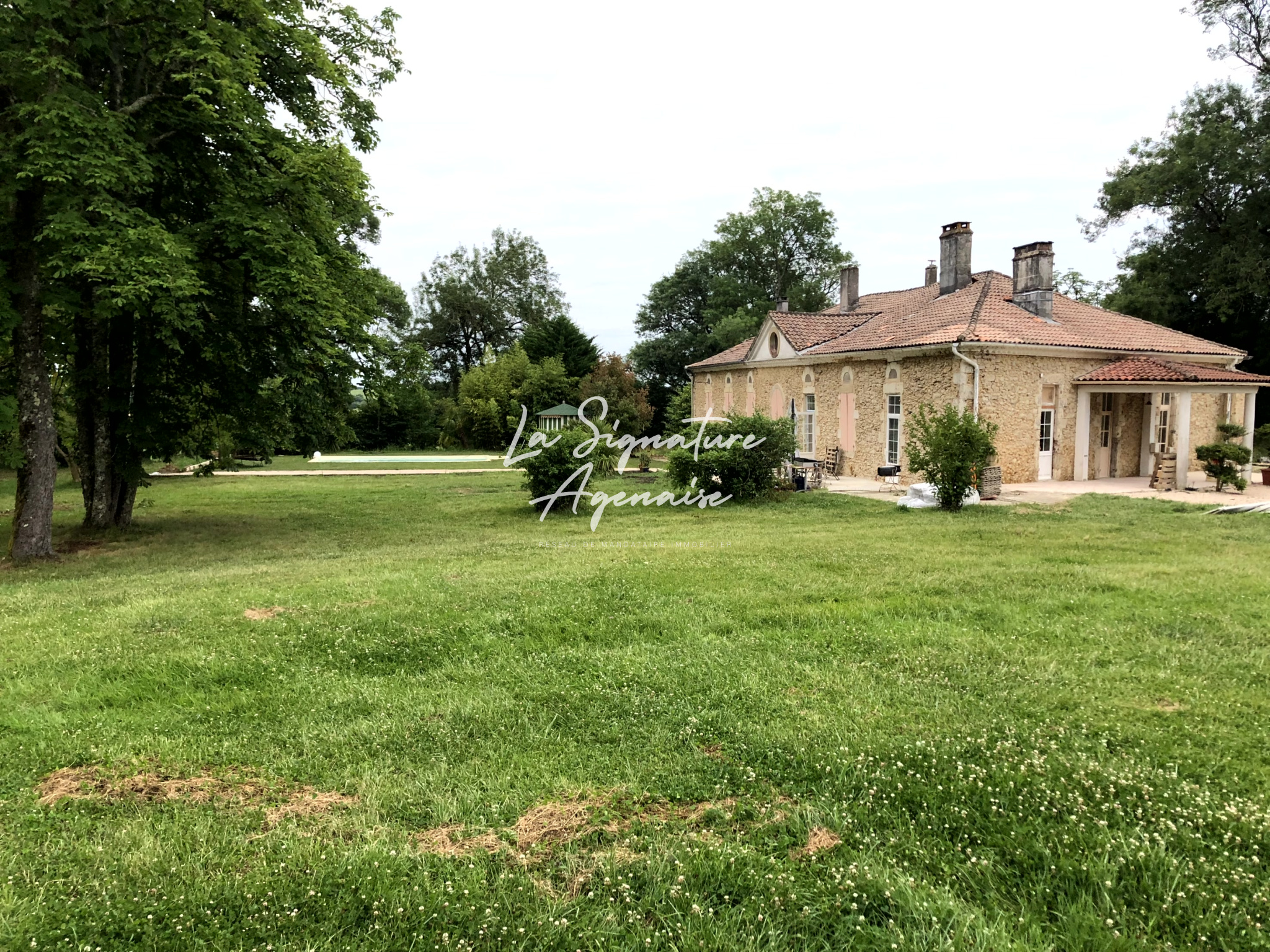 ...Elle s'étend sur un vaste terrain arboré avec piscine et espace SPA, sans vis-à-vis et exposée...