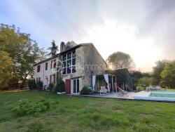 ... récente, aux tons naturels, est sublimée par un sol en travertin assorti aux poutres apparentes réc...