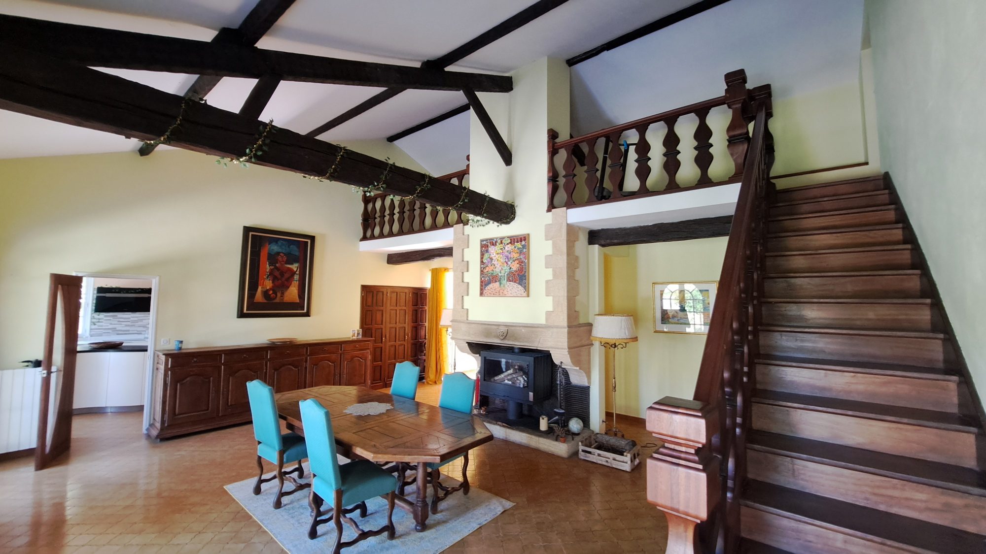...Espaces de vie généreux : séjour 60 m², salle à manger 30 m², cuisine équipée 20 m²...