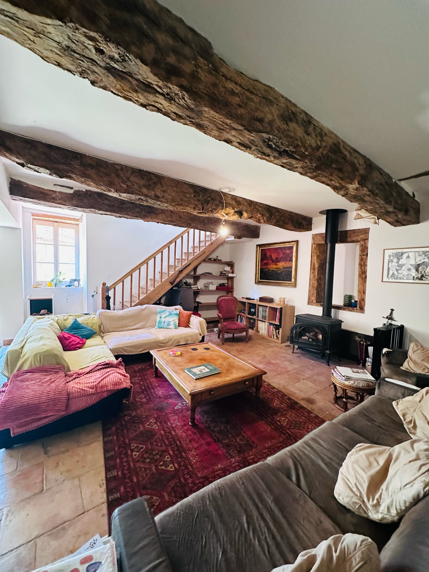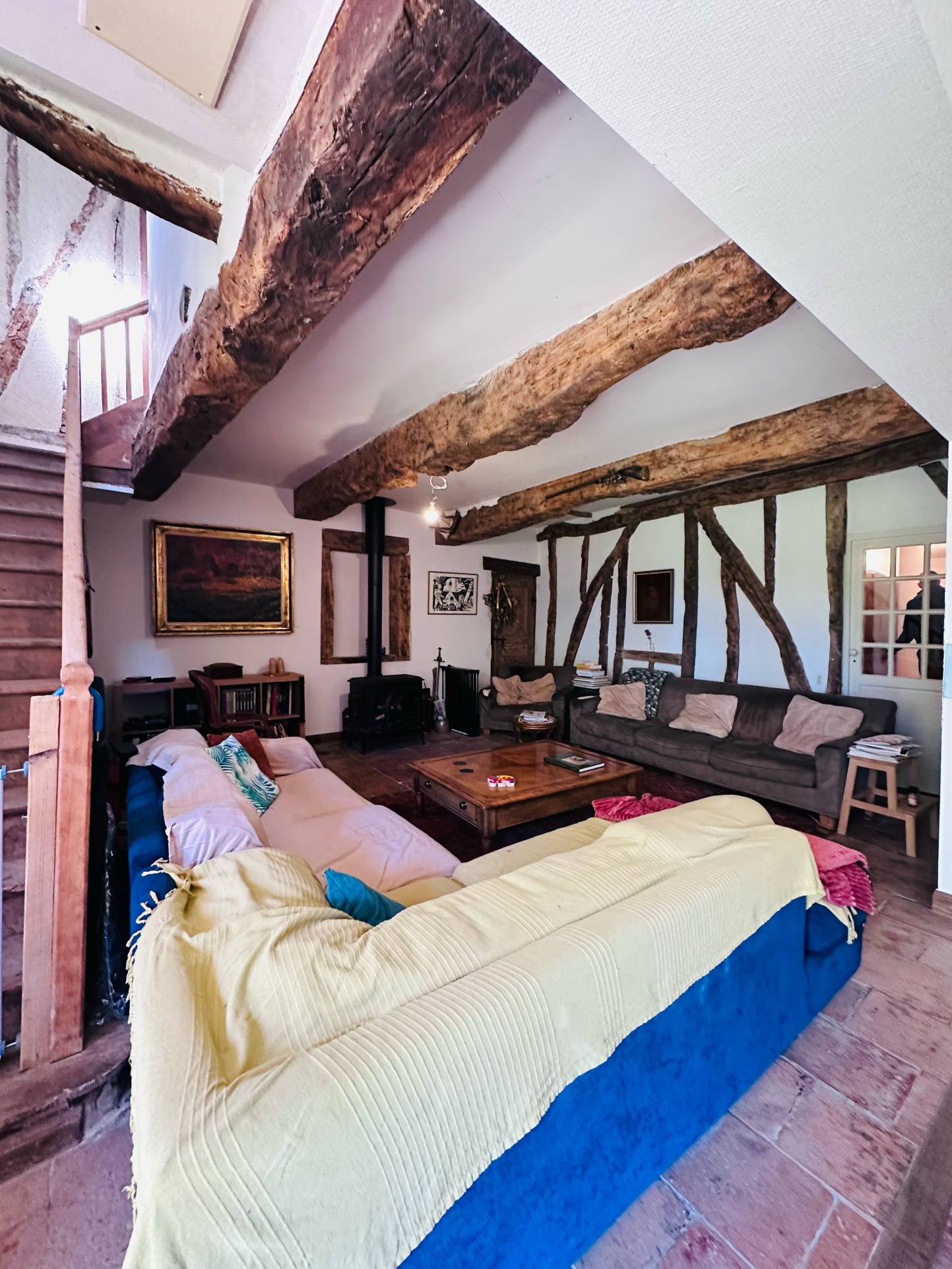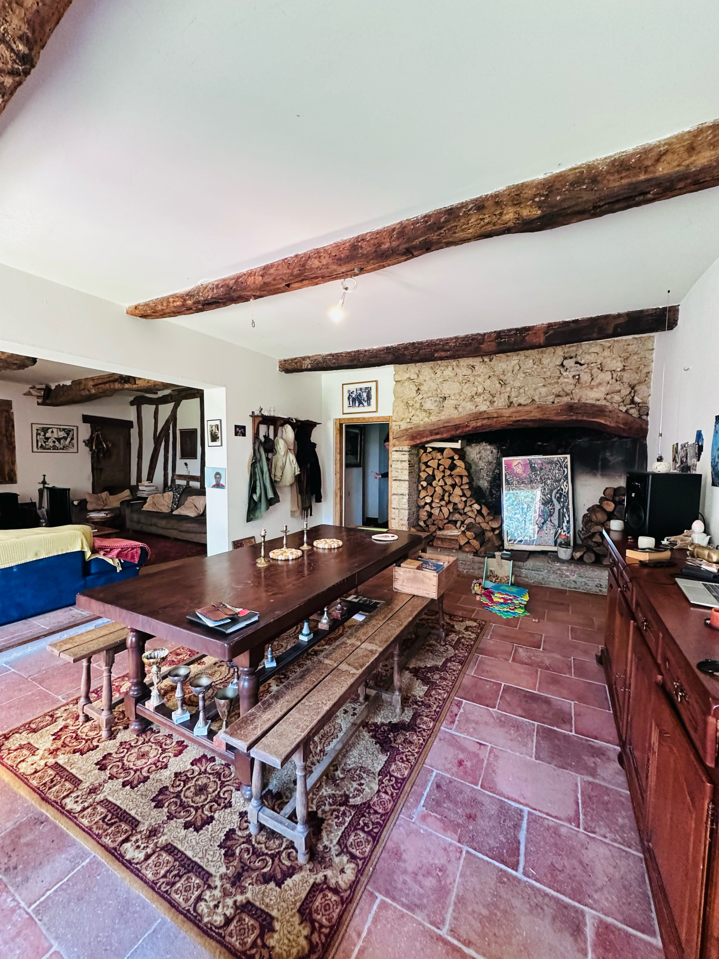 ... séjour lumineux,un salon chaleureux avec une belle cheminée,une cuisine sép...