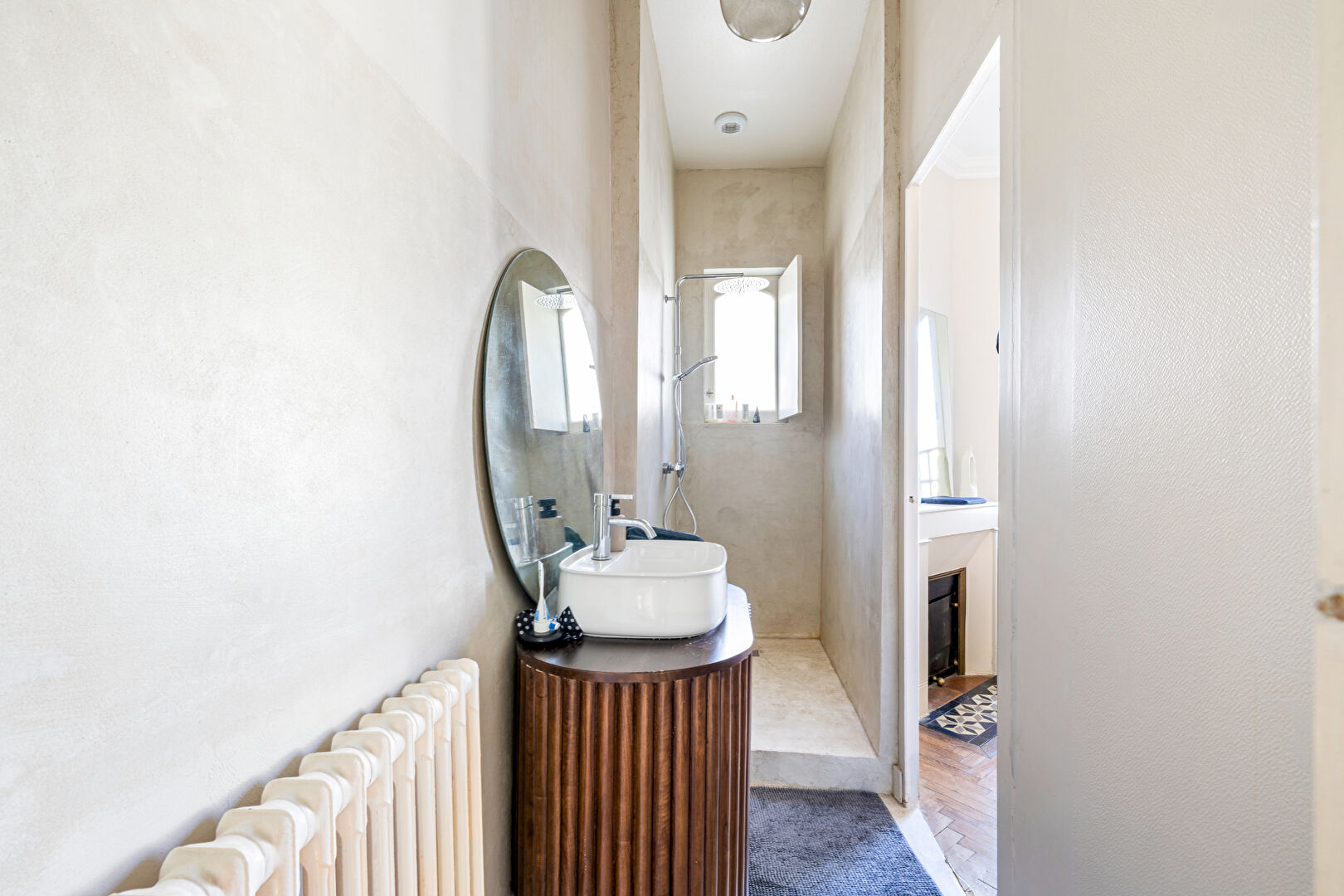 ...Elle offre trois chambres spacieuses dont une avec un bureau, ainsi qu'une dépendance attenante...