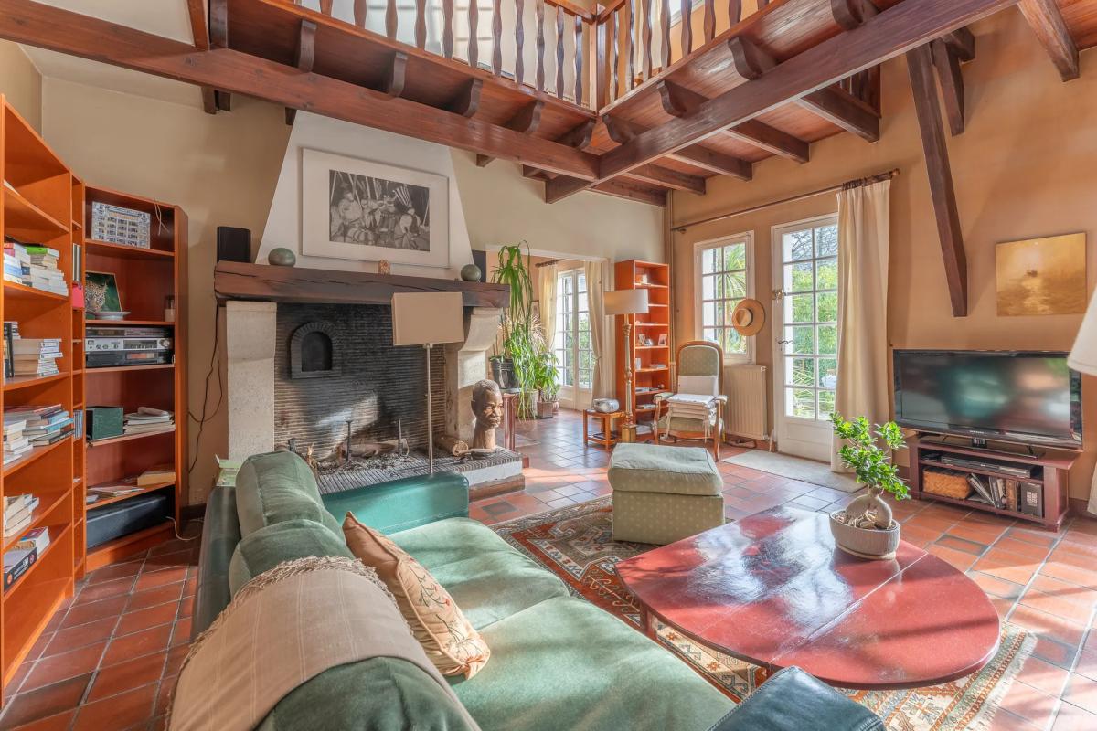 ... Un espace en mezzanine, parfait pour un coin lecture ou une bibliothèque, surplombe le salon, ajout...