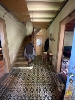...Au rez-dechaussée une entrée en carreaux de ciment, une cuisine, un salon et une grande pièce...