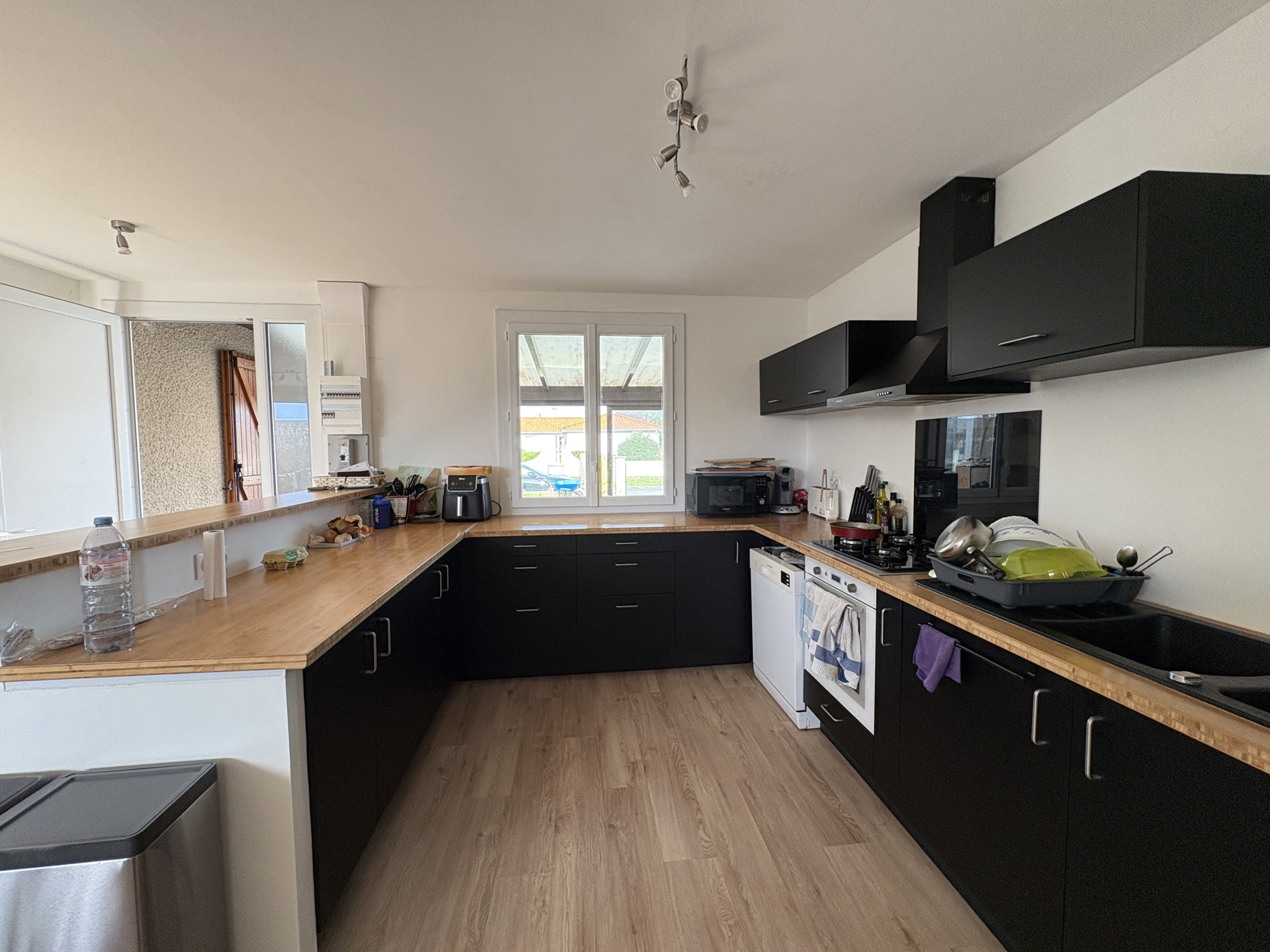 ...Elle se compose d'un grand espace de vie traversant et est dotée d'une cuisine toute équipée...