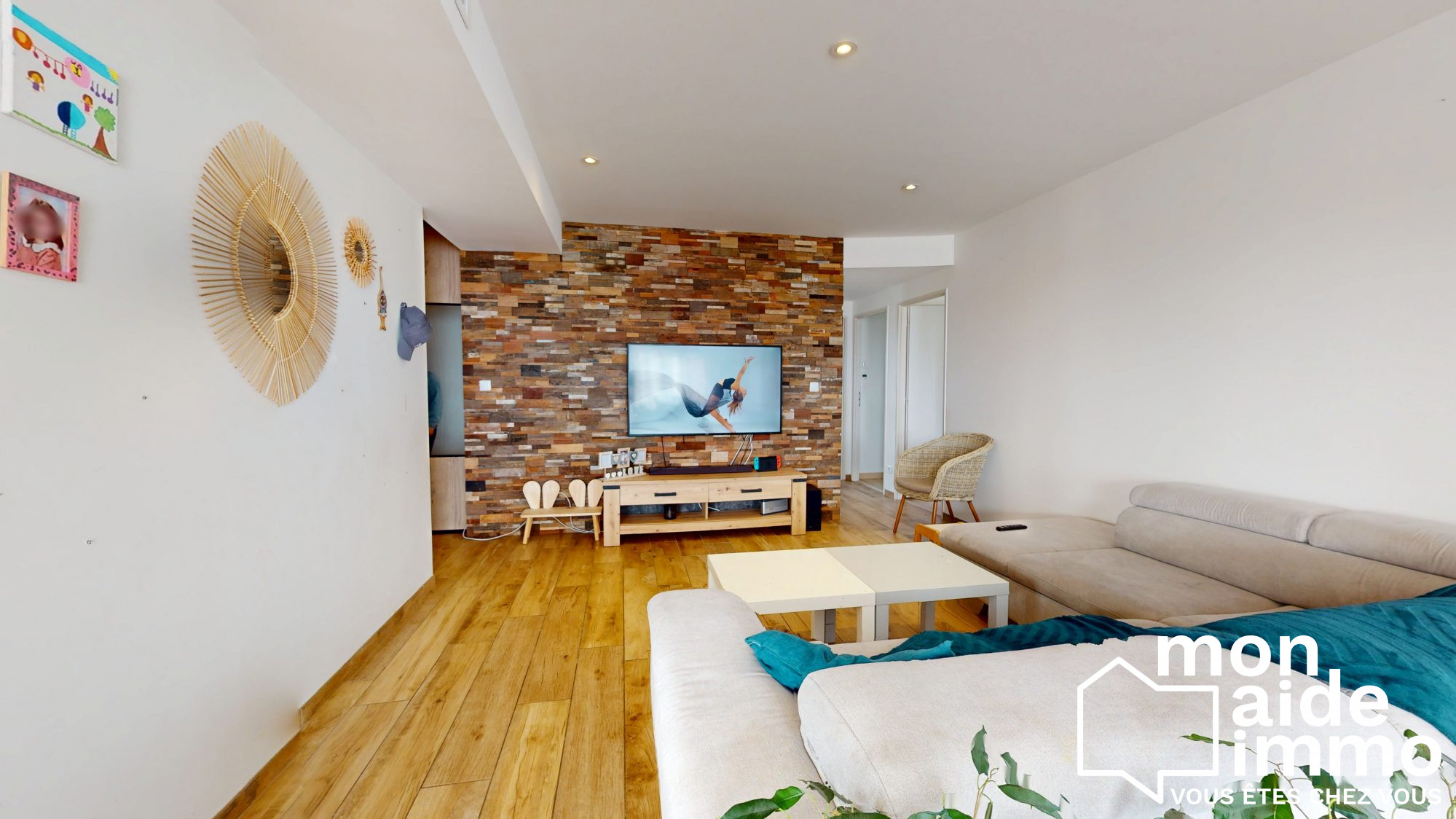 ...Dès l'entrée, le charme opère : le cachet de l'ancien (pierres apparentes, cheminée) se marie...