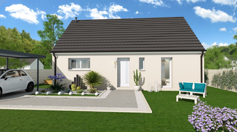 ...Pièce de vie de 42m² avec cuisine ouverte, 3 chambres et un garage de 15m²...