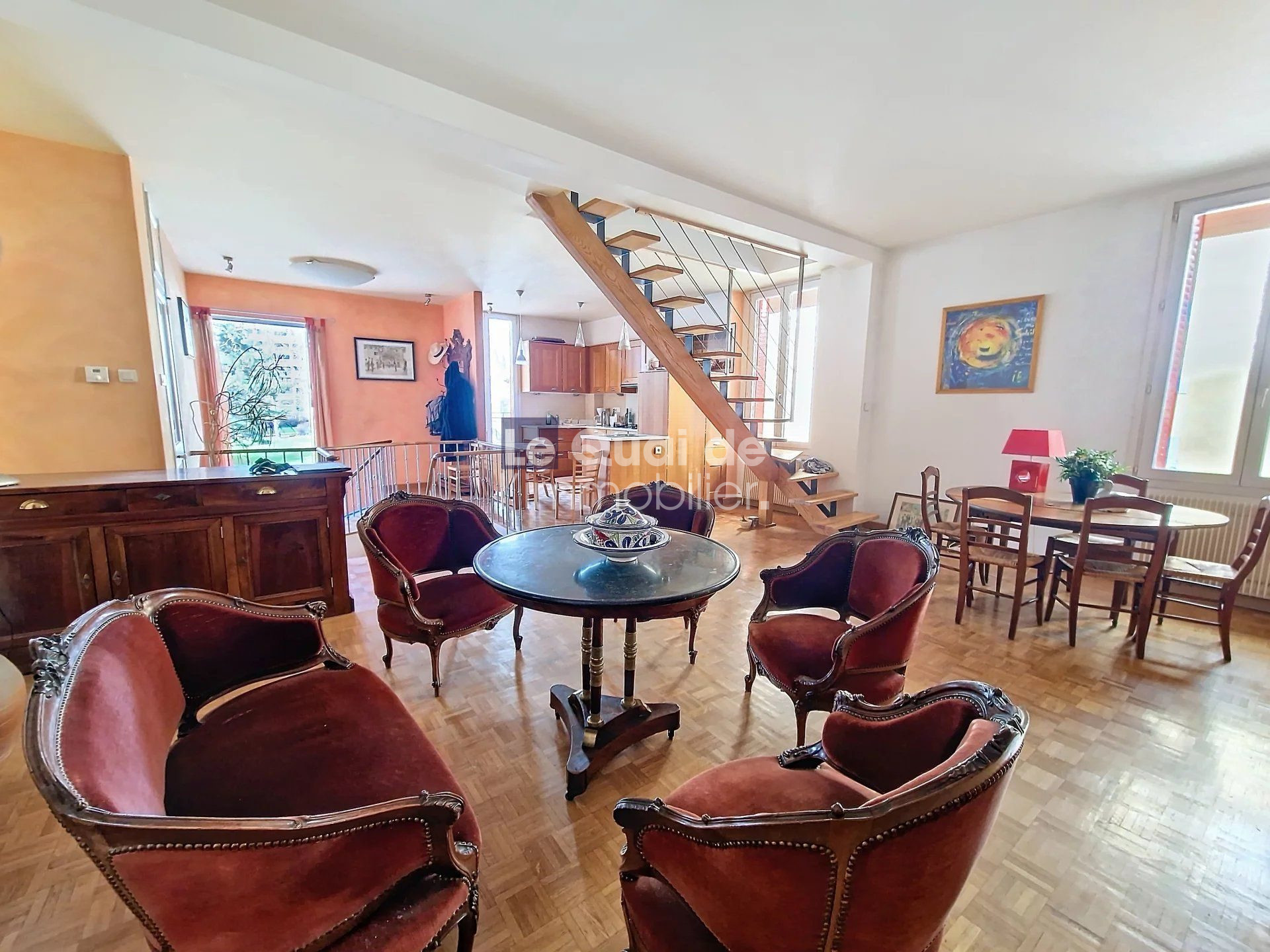 ...Ce bien atypique de 80m² répartis sur trois niveaux offre une configuration originale et de...