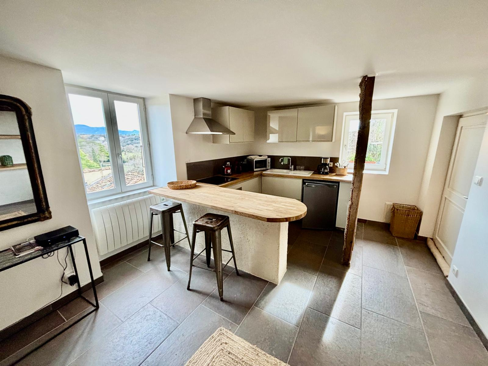...Cette bâtisse se décompose ainsi : Entrée , Salon /TV , cuisine/ coin repas , terrasse (VUE) , wc...
