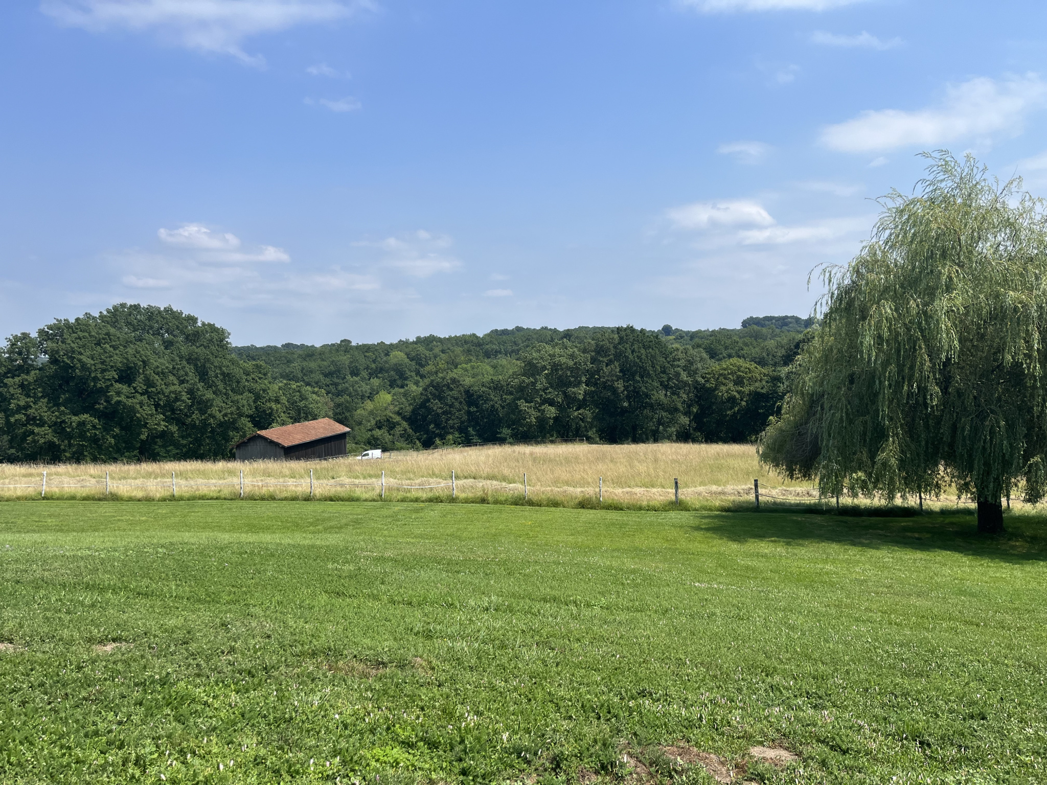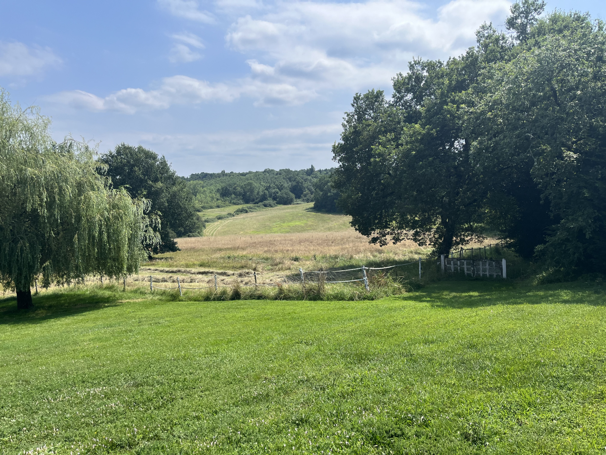 ... bas, l'ancien séchoir rénové permet de stocké le foin pour les bêtes. En fond de parcelle, on remar...