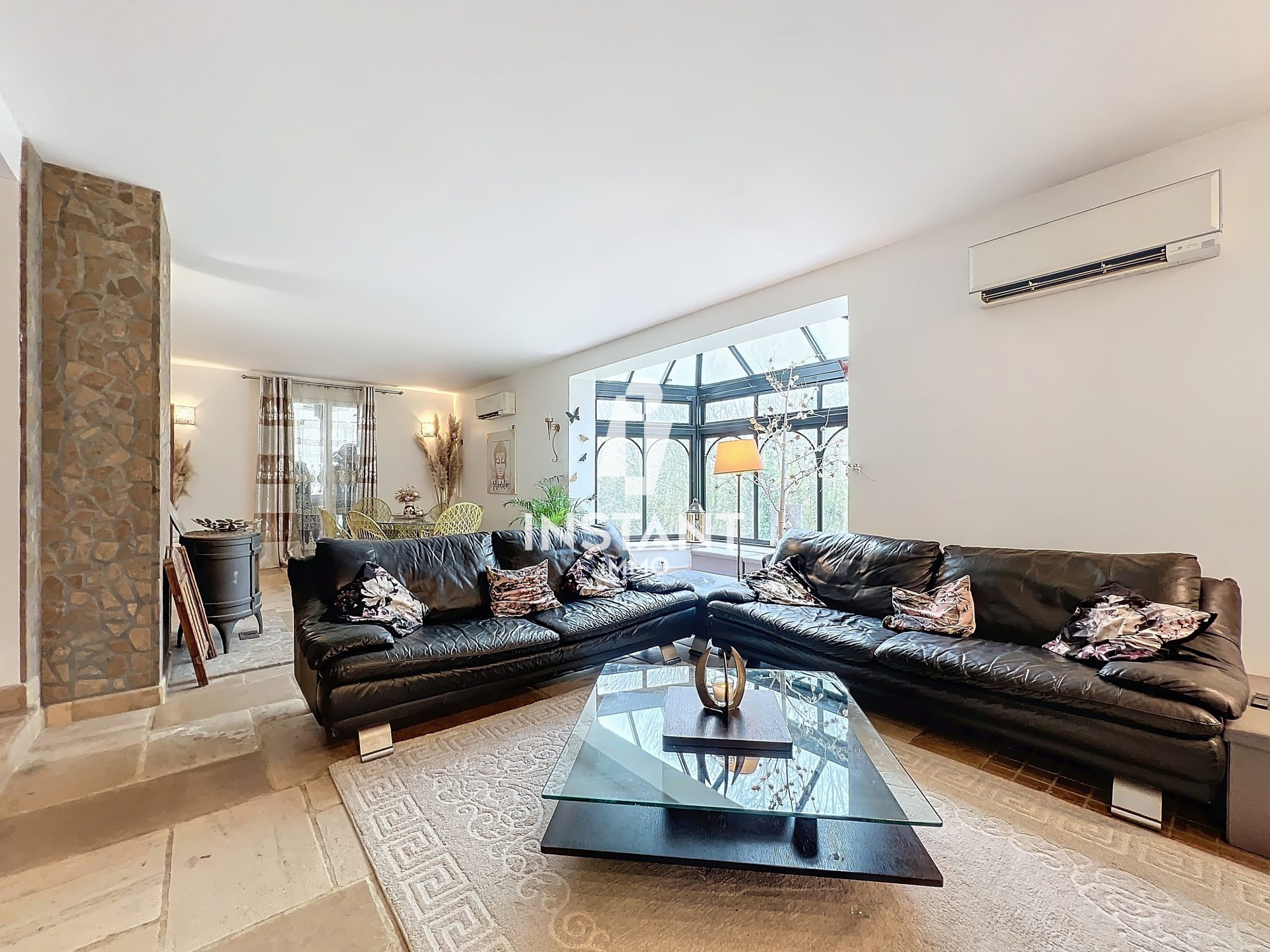 ...La pièce de vie, baignée de lumière, s'ouvre sur un jardin accueillant avec une vue totalement...
