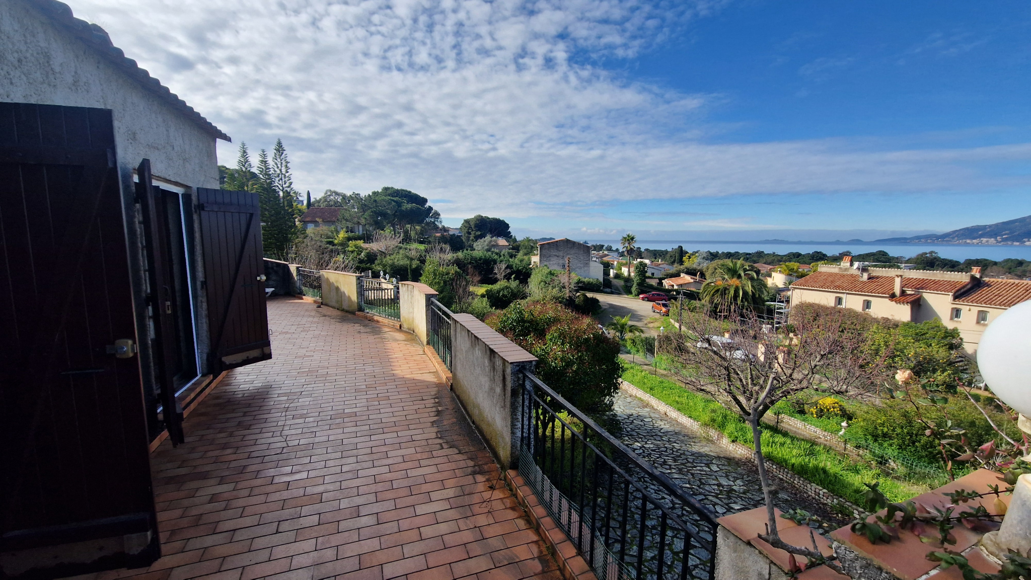 ...Édifiée sur un terrain plat paysager de 1 400 m2 offrant une vue dégagée sur le Golfe d'Ajaccio...