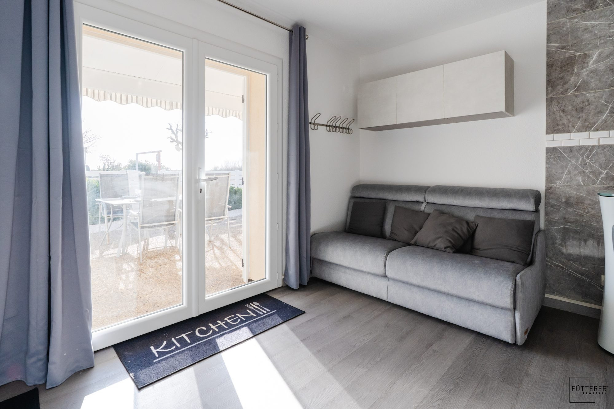 ... : un séjour lumineux avec cuisine ouverte, une chambre, une salle d'eau et un WC.