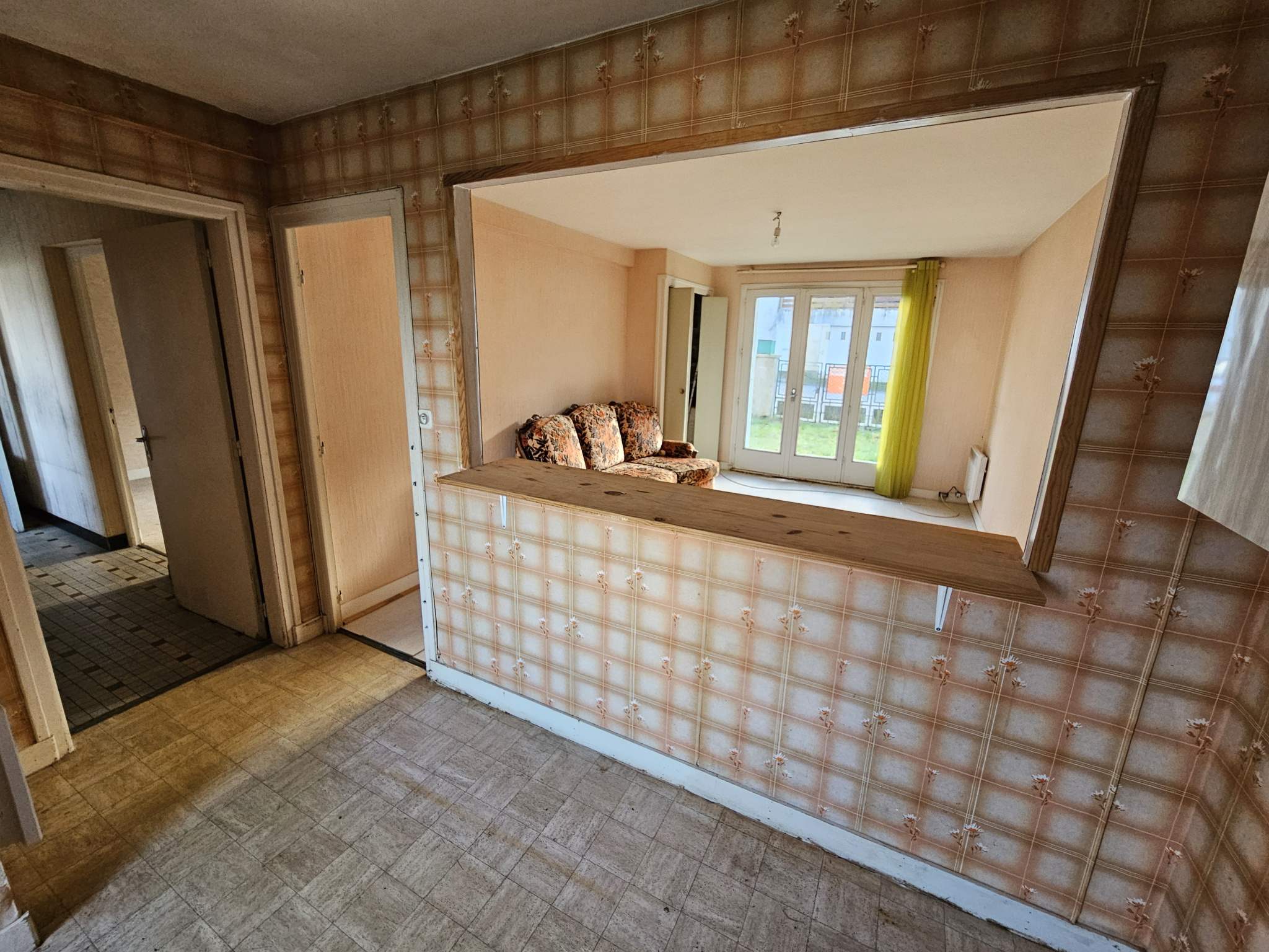 ...Une entrée commune qui vous guide vers le premier logement ayant : couloir, chambre, pièce de vie...