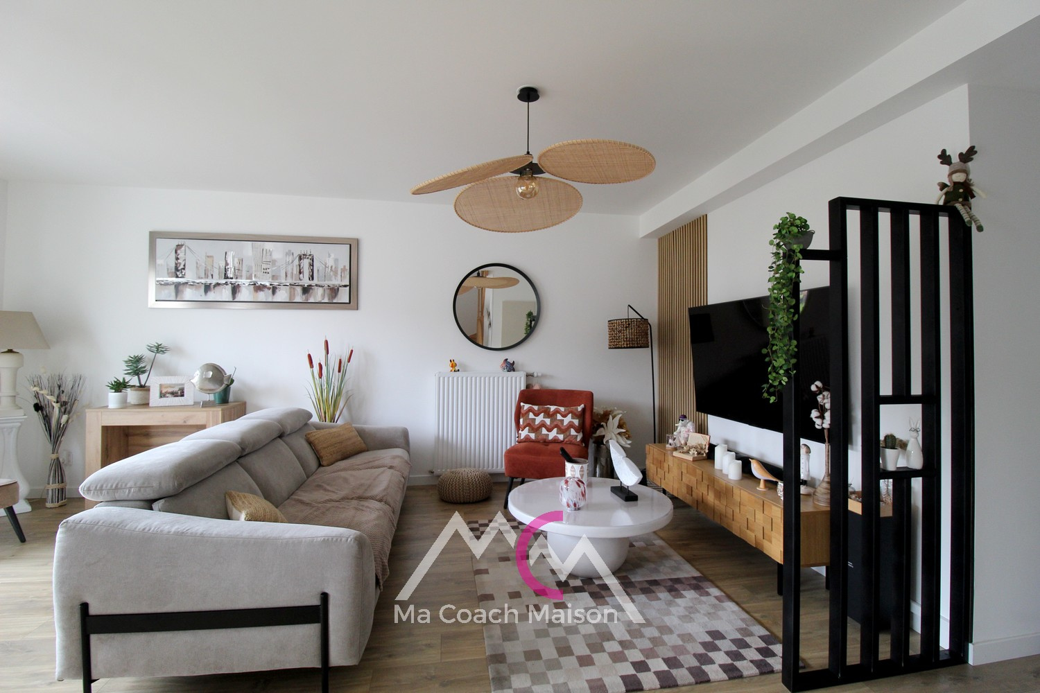 ... un salon-séjour lumineux ouvert sur une cuisine aménagée et entièrement équipée.Le rez-de-chaus...